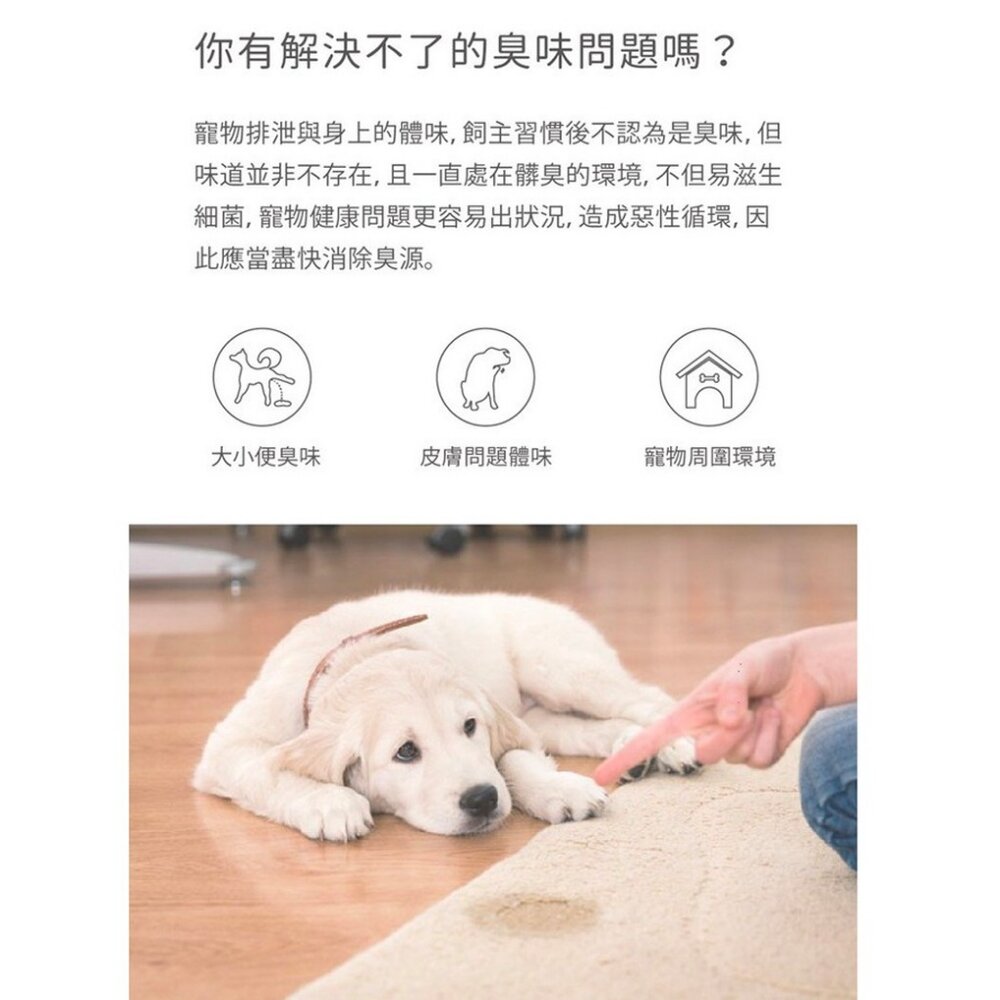適用說明:中和寵物肌膚異味,有效抑菌幫助毛孩肌膚健康,改善因肌膚問題引起的異味問題
