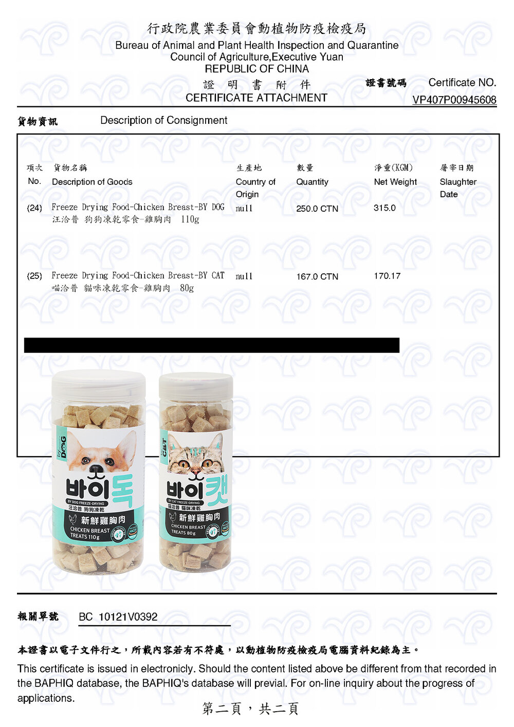 營養標示:蛋白質80%以上 脂肪3%以下 灰分8%以下 水分10%以下