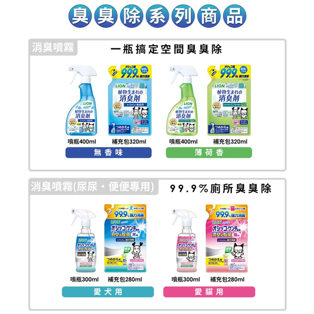 商品名稱:LION 獅王 寵物除臭噴 空間環境 尿盆 瞬間消臭 除尿臭 寵物清潔 美容用品毛掌櫃寵物店