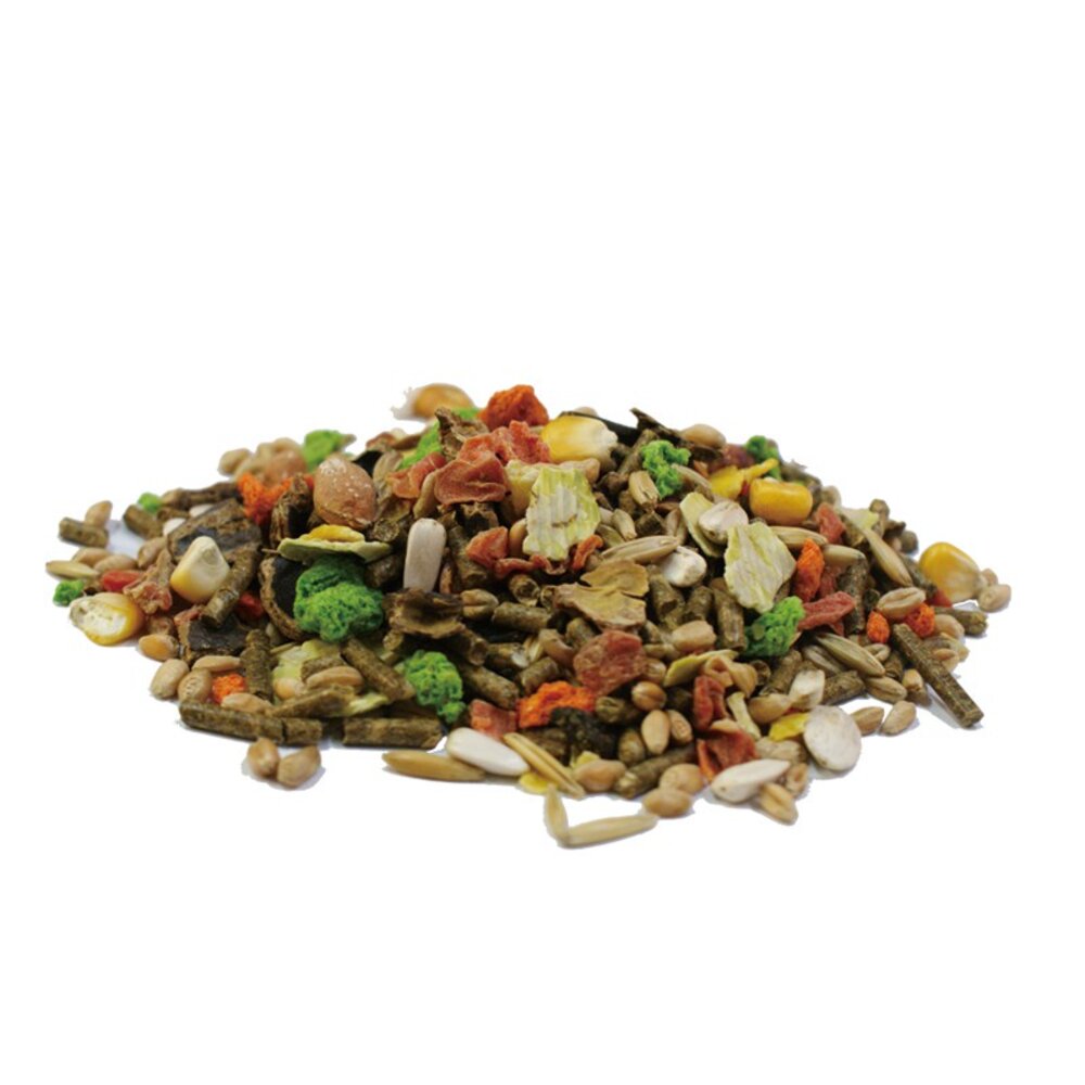 成分: 小麥、燕麥、粗麥麩、玉米餅、玉米、米洛、豆角、葵花籽、豌豆、胡蘿蔔塊、玉米片、苜蓿、棕櫚仁片、甜菜果肉、