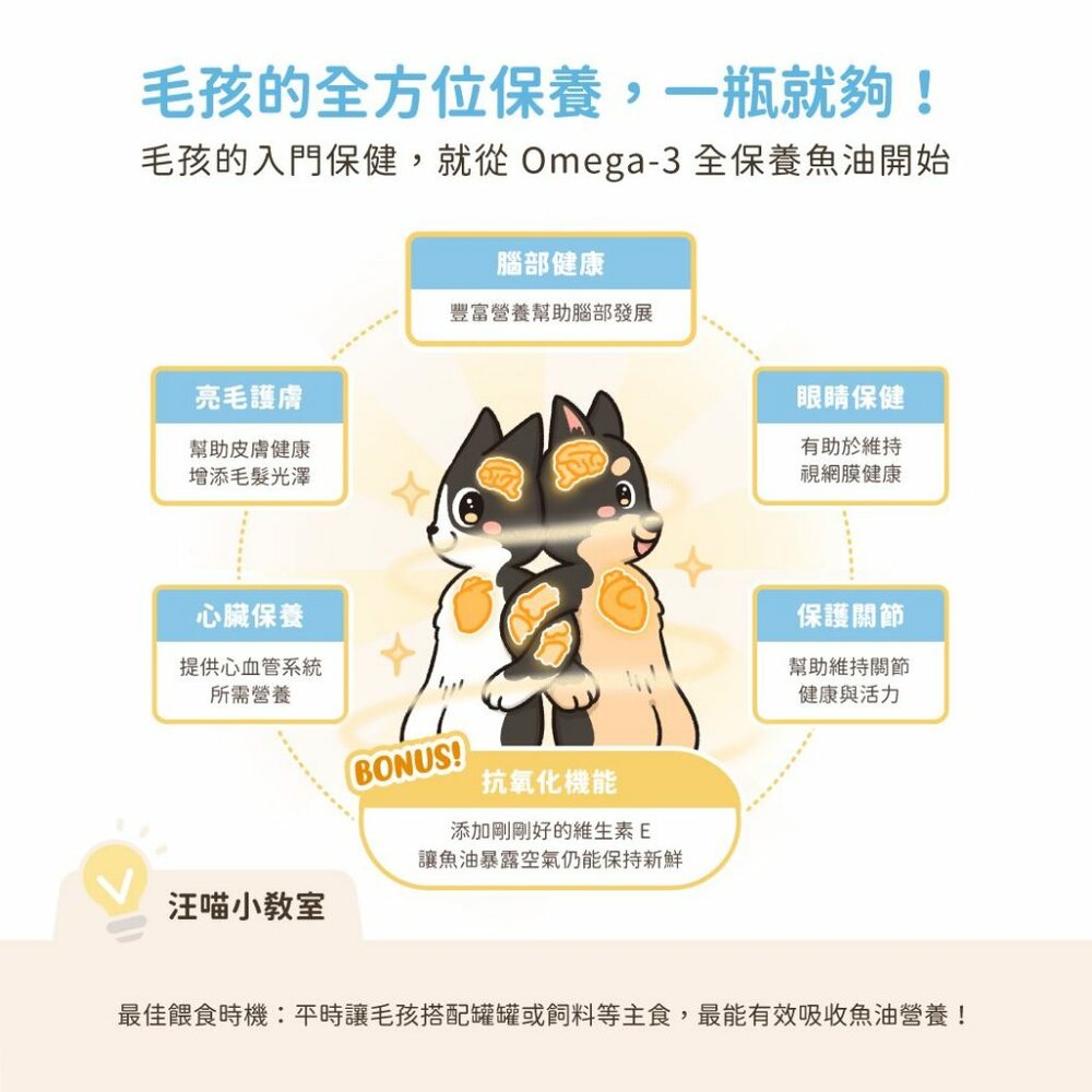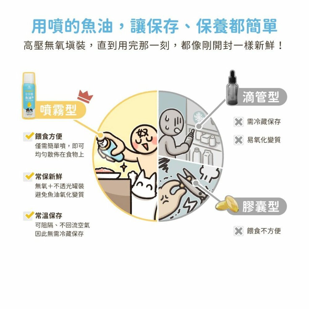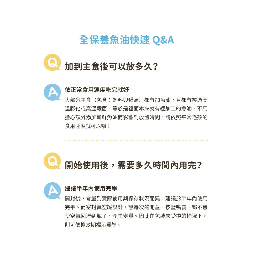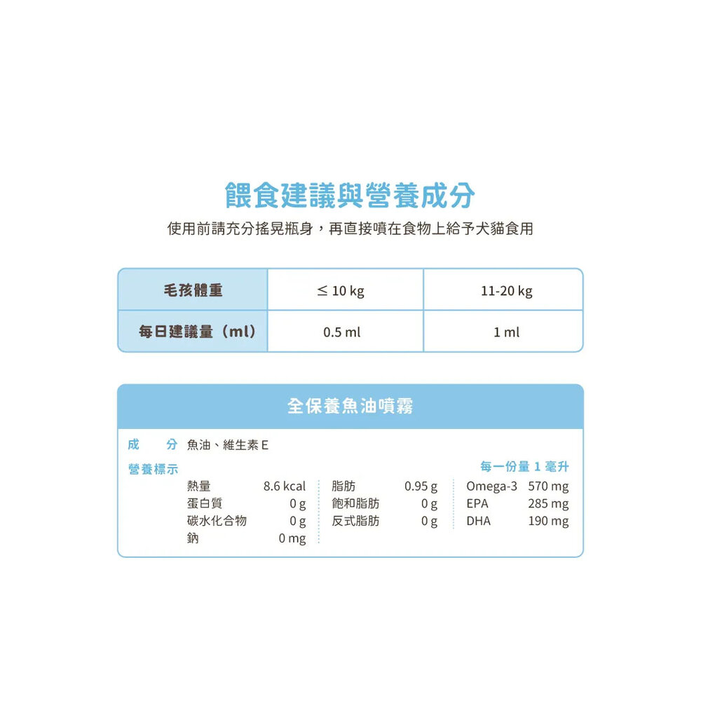 商品名稱:汪喵星球 85% Omega-3 機能魚油 全保養魚油 噴霧型 亮毛護膚鱉蛋粉 毛髮 皮膚 狗 貓 保健品毛掌櫃寵物店