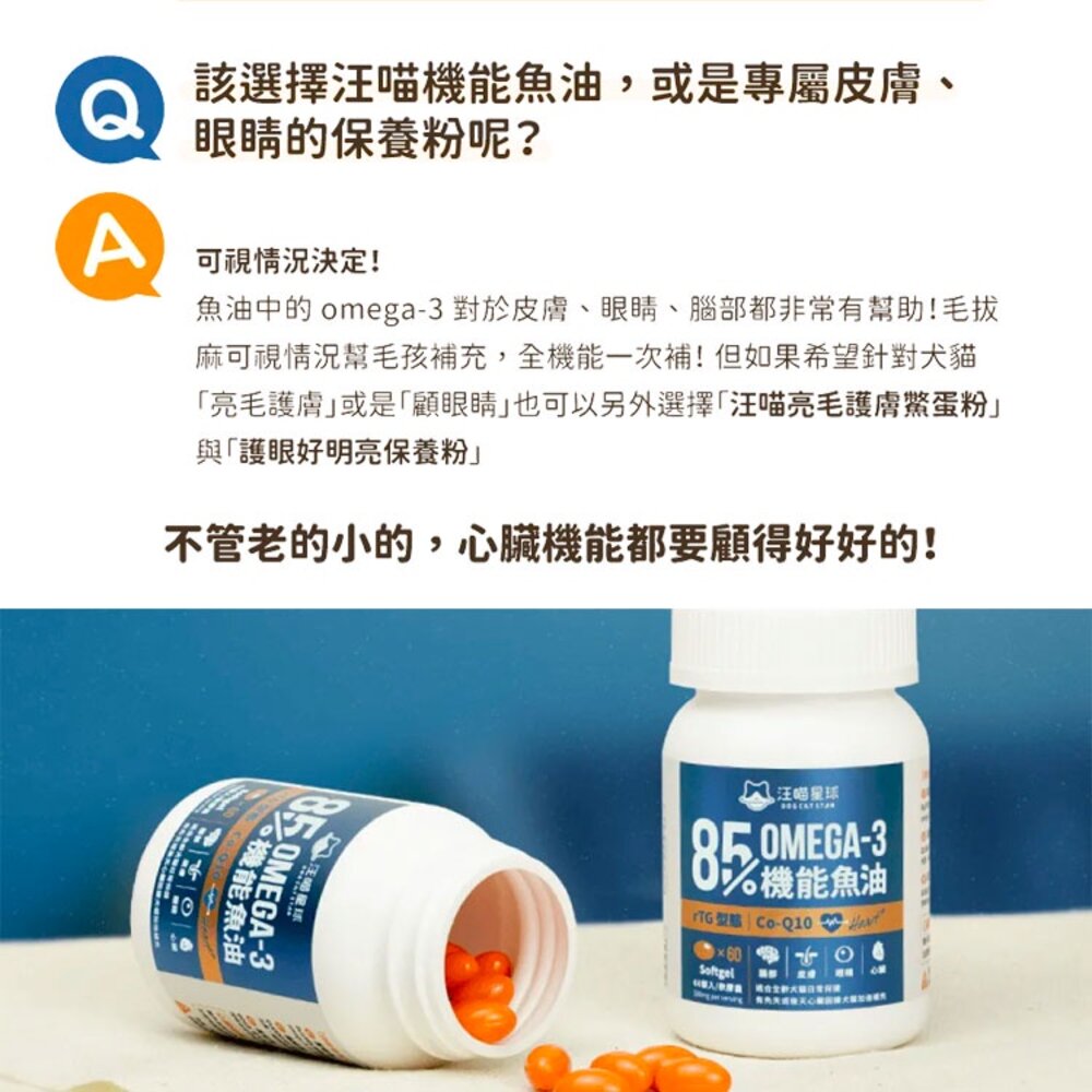 商品名稱:汪喵星球 85% Omega-3 機能魚油 心臟 護膚 Q10 保健品毛掌櫃寵物店