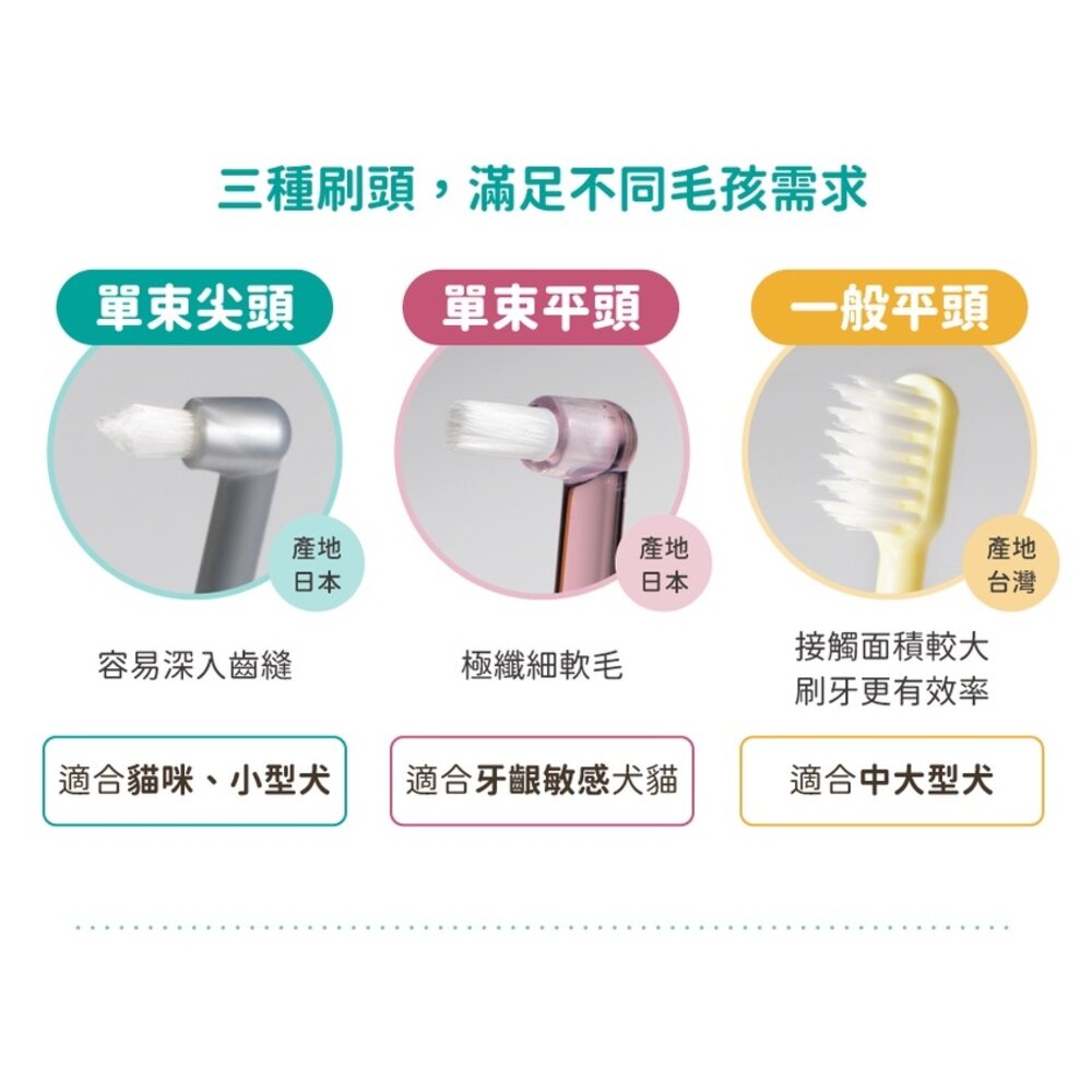 汪喵犬貓專用牙刷為日本製造與台灣特製牙刷,有單束款、一般平頭款可選擇,