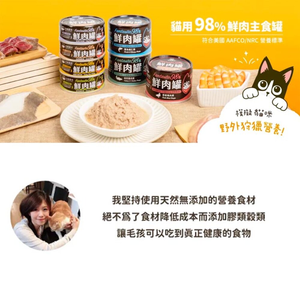 標籤:#FANTASTIC, #98%, #鮮肉無膠主食貓罐, #貓咪罐頭, #主食罐, #貓罐頭, #80G&165G, #毛大二寵物店