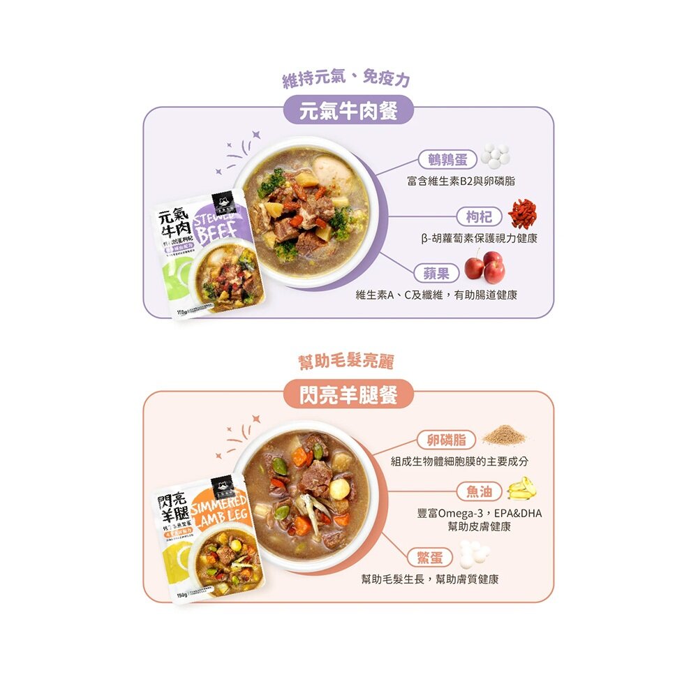 規格(超取限重5公斤):健美火雞餐150g, 強壯雞腿餐150g, 元氣牛肉餐150g, 閃亮羊腿餐150g