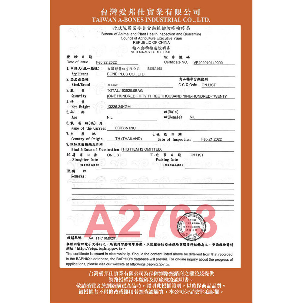 營養標示及含量:粗蛋白 20%↑,粗脂肪 2%↑,粗纖維 0.5%↓,粗灰分 3%↓,水份 60%↓。