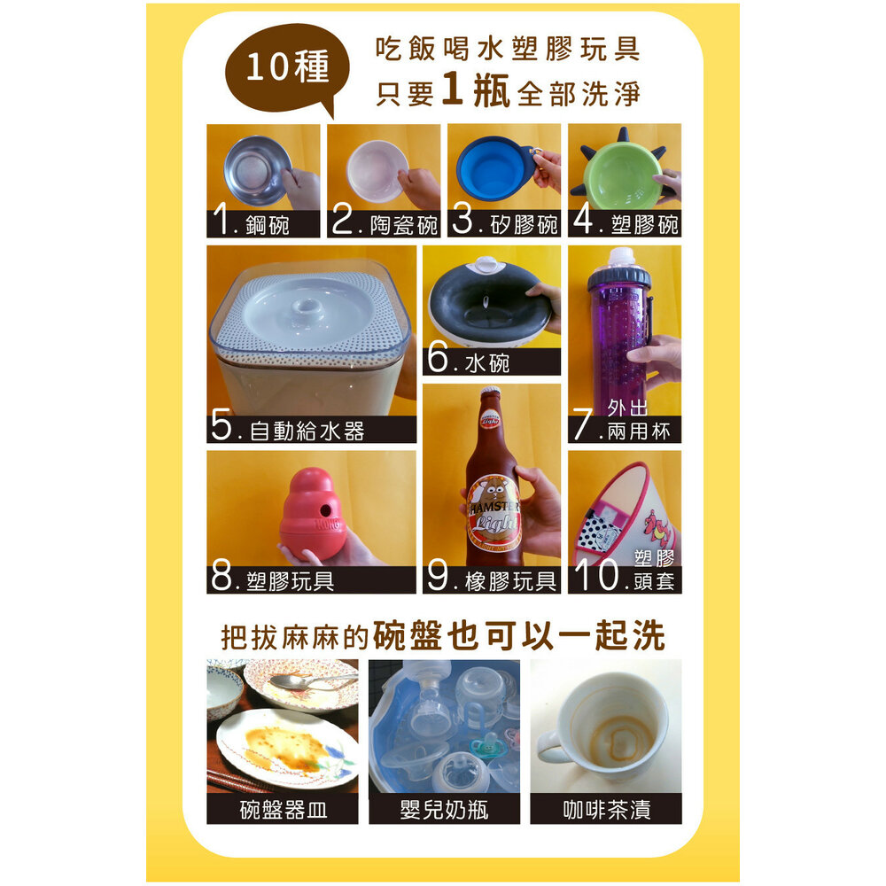 10種餐碗水杯塑膠玩具,1瓶全部洗淨