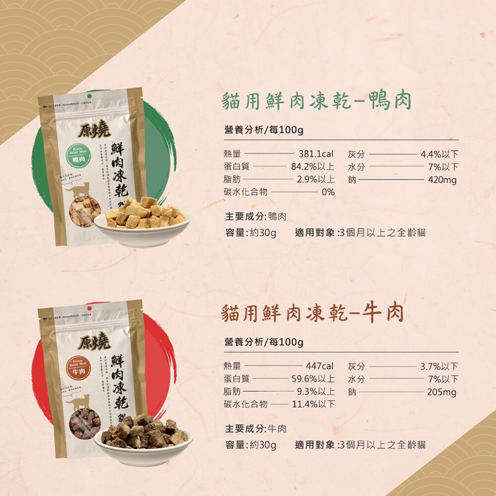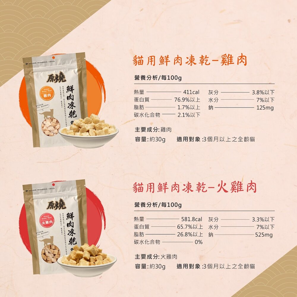 原燒|貓用鮮肉凍乾 貓凍乾 貓咪凍乾 寵物凍乾