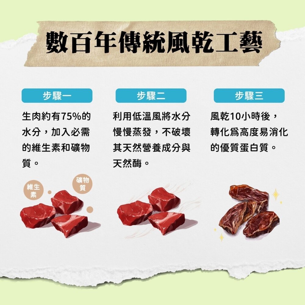帝王鮭、牛肉、牛肺、牛腎、牛肝、蔬菜甘油、酵母提取物、啤酒酵母、鹽、天然抗氧化劑。