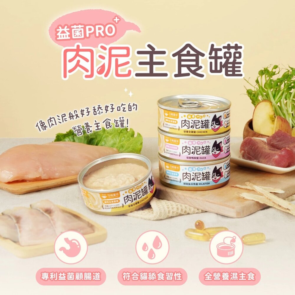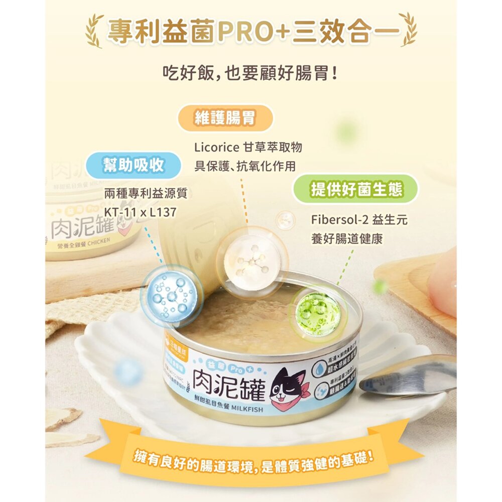 商品名稱:貓主食罐 益菌PRO+ 綿密肉泥主食罐 肉泥罐 貓罐頭毛掌櫃寵物店
