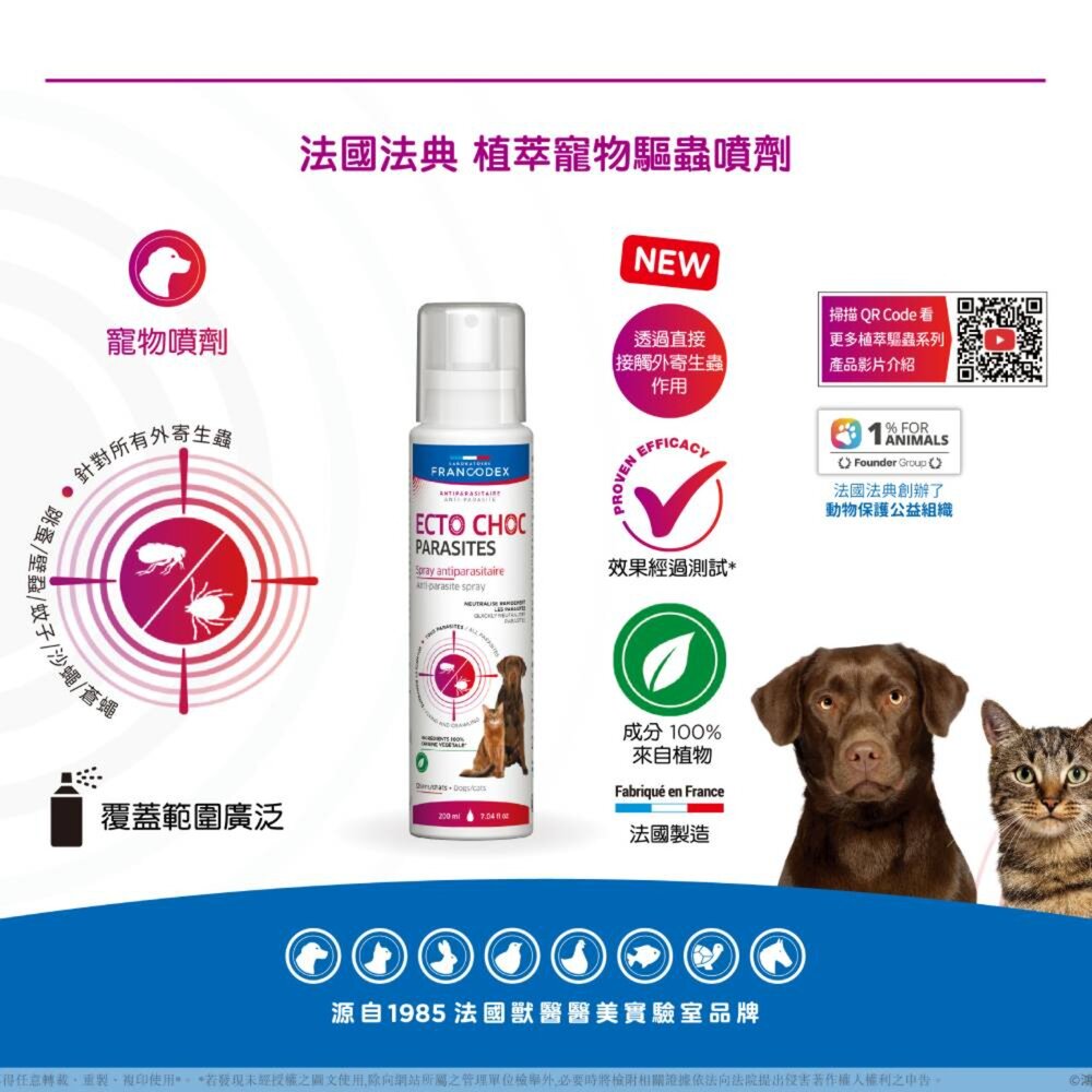 商品名稱:法國法典 寵物驅蟲噴霧 植萃寵物驅蟲噴劑 植萃全能驅蟲噴霧 驅蟲噴劑 寵物除蟲 寵物驅蟲毛掌櫃寵物店