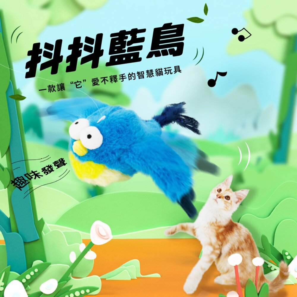 🕊️ 抖抖藍鳥|會飛的藍色小精靈,喚醒貓貓的狩獵魂
