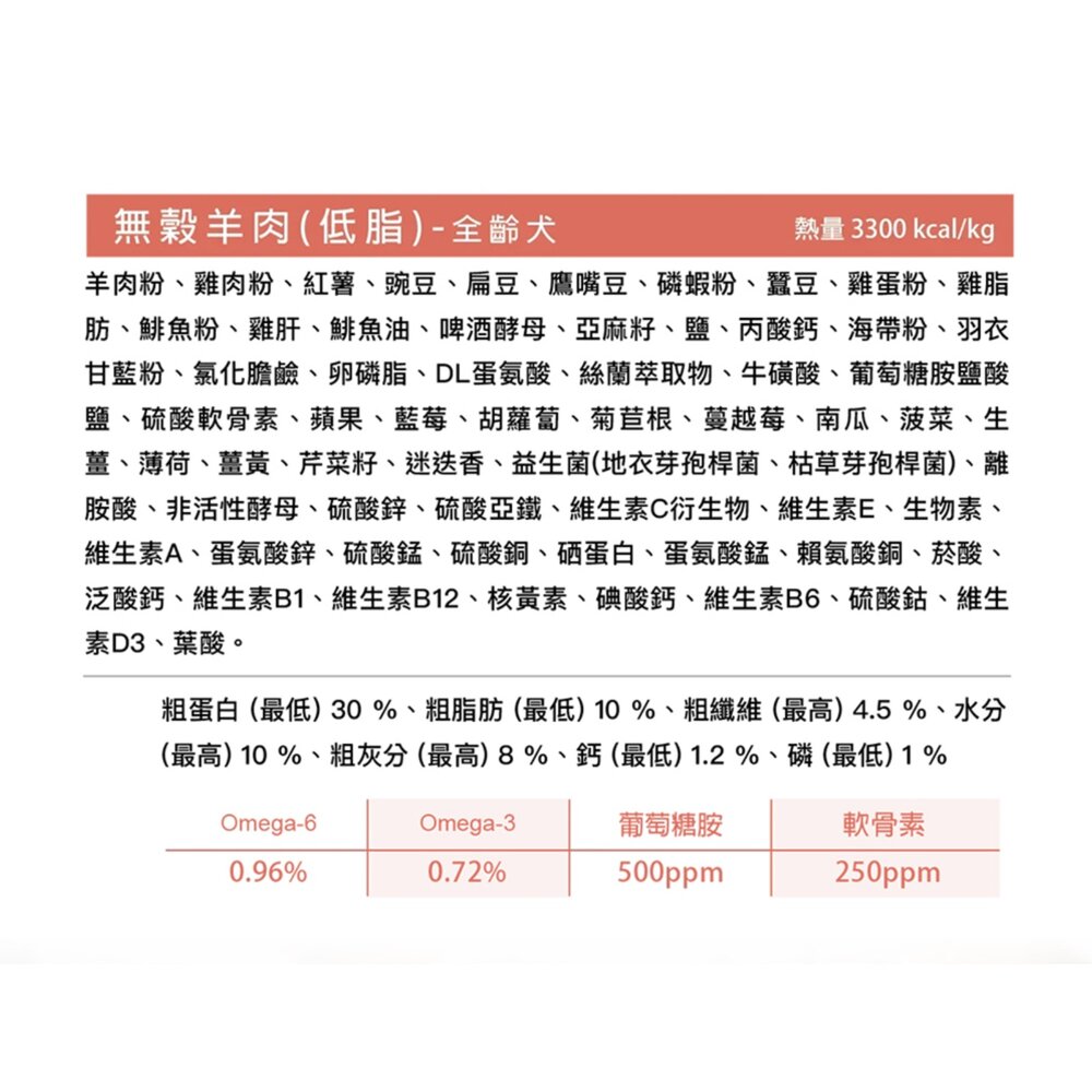 規格(超取限重5公斤):羊肉(低脂) 5磅, 羊肉(低脂) 15磅(限宅配), 鮭魚&雪蟹 5磅, 鮭魚&雪蟹 15磅(限宅配), 雞肉&鴨肉 5磅, 雞肉&鴨肉 15磅(限宅配)