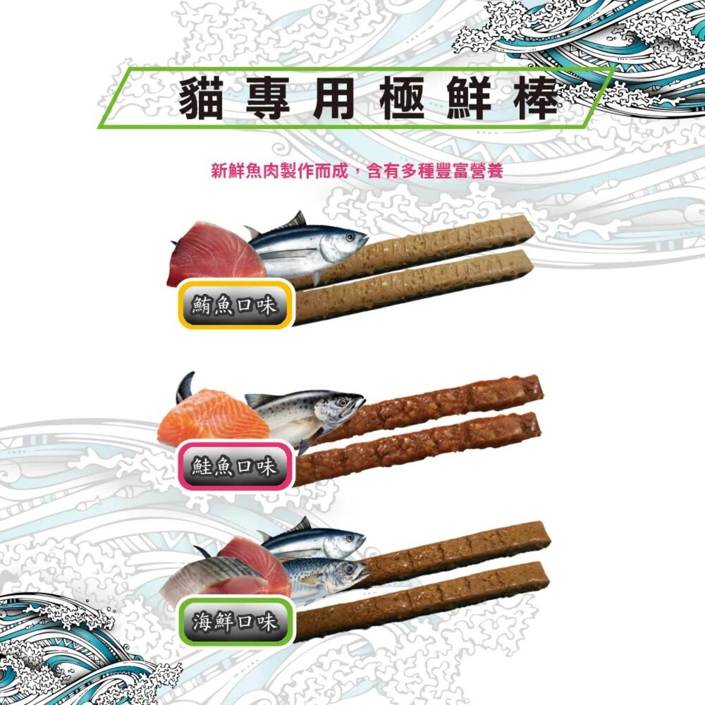 規格(超取限重5公斤):PV-334 鮪魚15g, PV-334 海鮮15g, PV-334 鮭魚15g, PV-334 鮪魚5g (單條), PV-334 海鮮5g (單條), PV-334 鮭魚5g (單條)