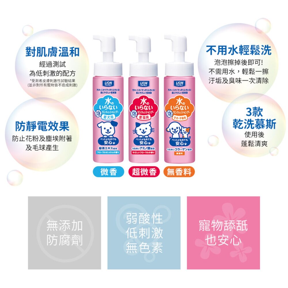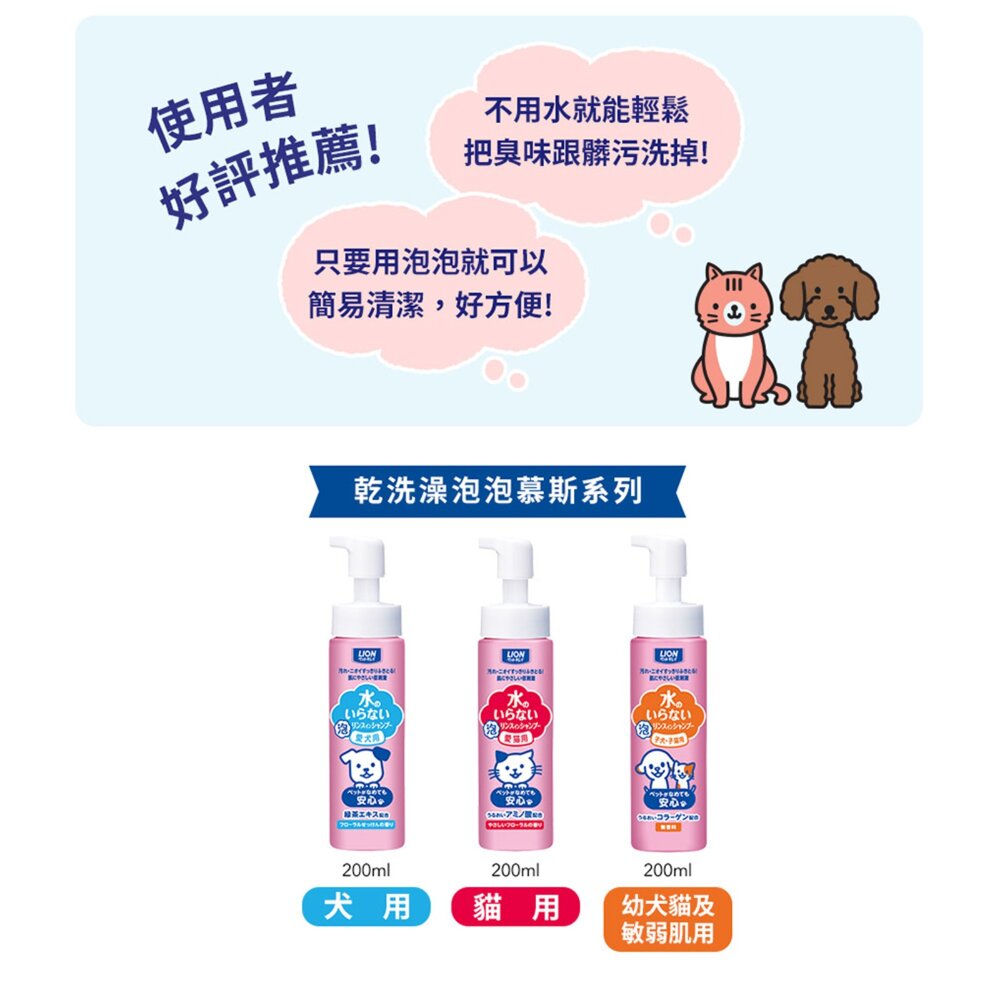 商品名稱:LION 獅王 寵物洗毛精 乾洗澡 寵物沐浴 貓咪洗毛精 寵物洗毛精 幼犬專用 幼貓專用毛掌櫃寵物店