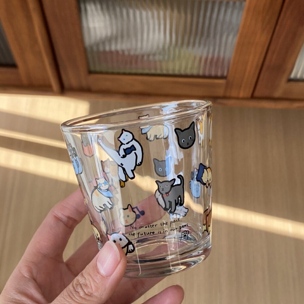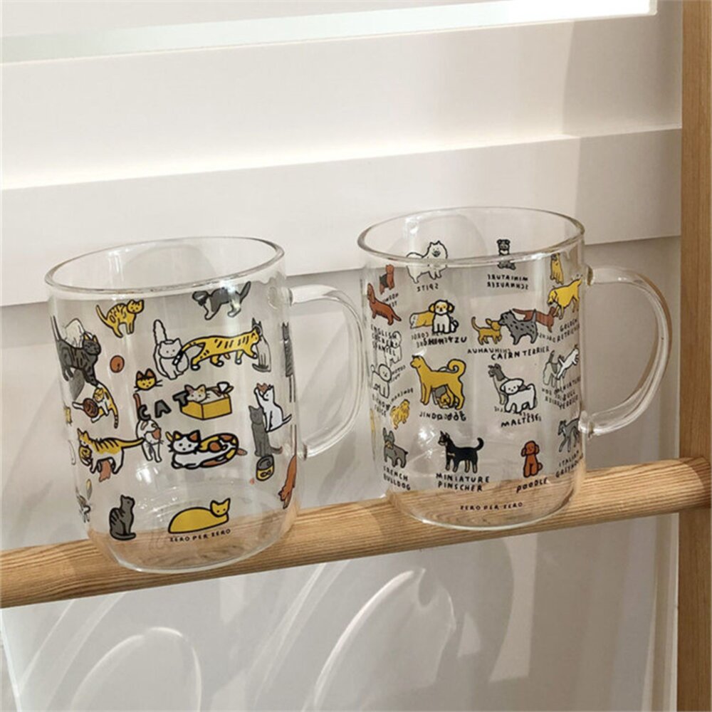 商品名稱:透明玻璃杯 馬克杯 可愛小狗小貓 ins塗鴉風馬克杯 韓系馬克杯 玻璃杯 簡約可愛 萌寵插畫牛奶玻璃杯毛掌櫃寵物店