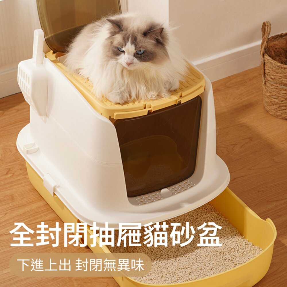 全封閉抽屜式貓砂盆|下進上出防帶砂|貓咪如廁不外漏!