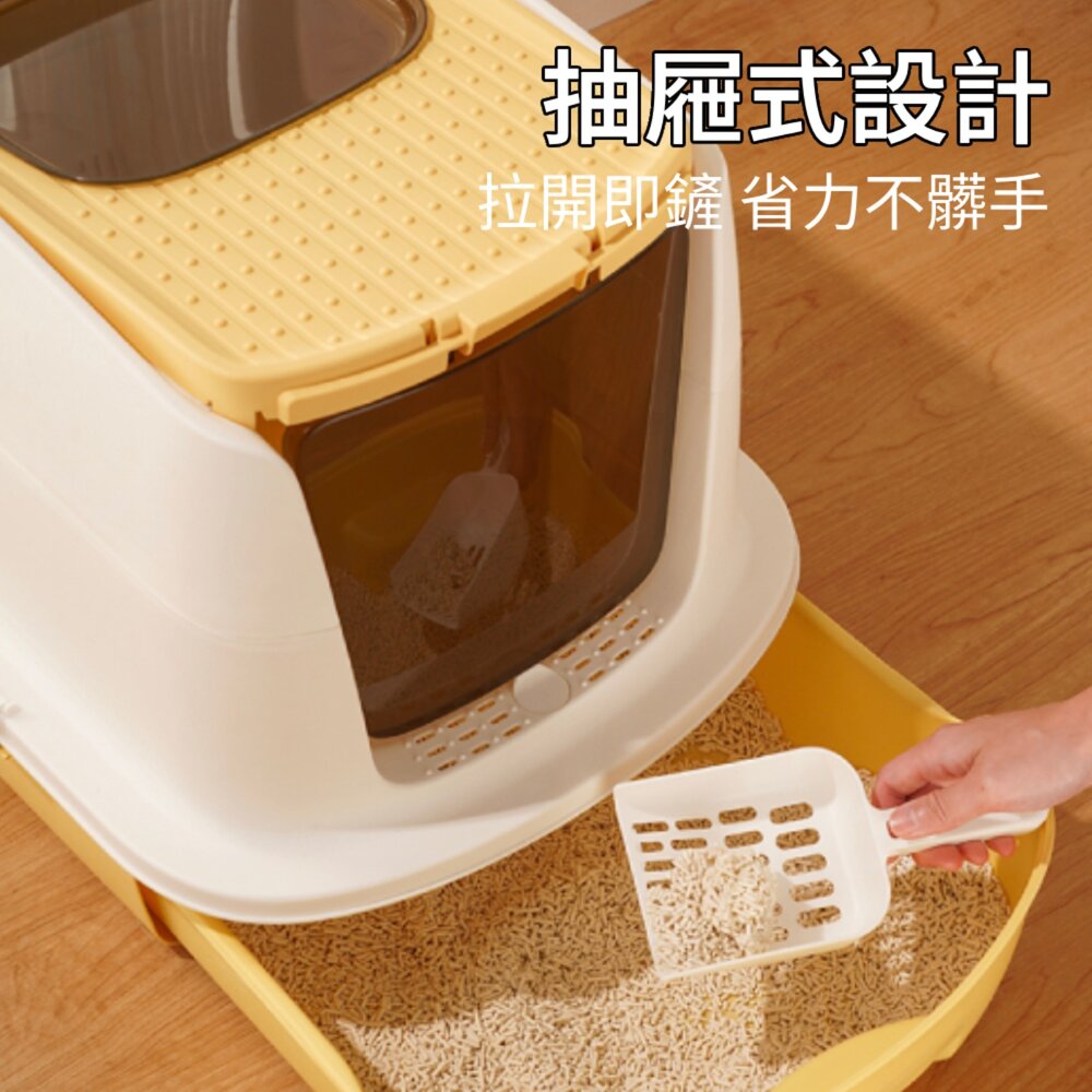 商品名稱:TY 折疊頂出抽屜式貓砂盆 大容量貓砂盆 一體式貓砂盆 貓咪廁所 頂蓋式前進頂出式 防濺隔臭貓砂盆毛掌櫃寵物店