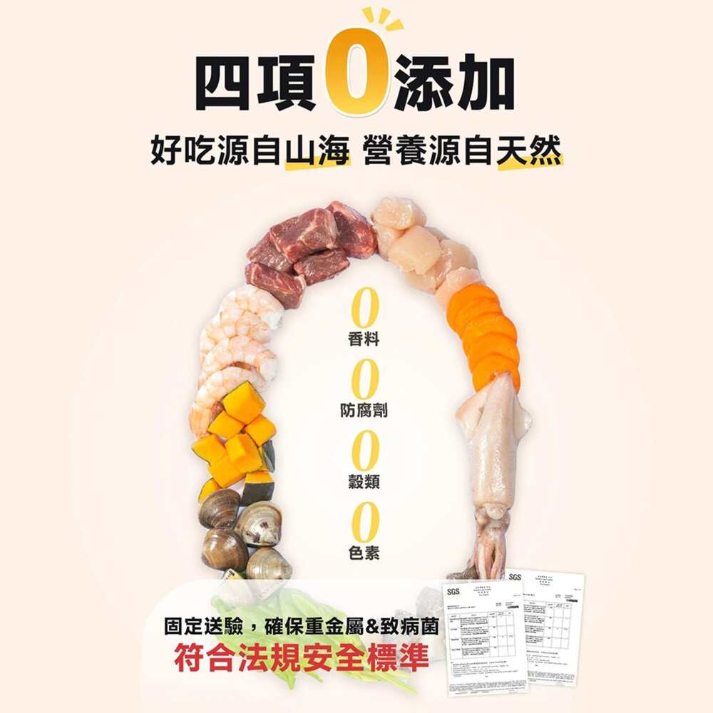 規格(超取限5公斤內):雞肉蝦仁150g, 鱈魚魷魚150g, 牛肉花蛤150g, 雞肉蝦仁400g, 鱈魚魷魚400g, 牛肉花蛤400g