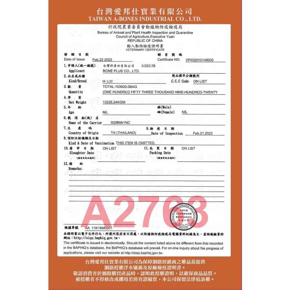 營養成分及含量:粗蛋白 55%以上, 粗脂肪 15%以上, 粗纖維 2%以下, 粗灰分 8%以下, 水分 6%以下