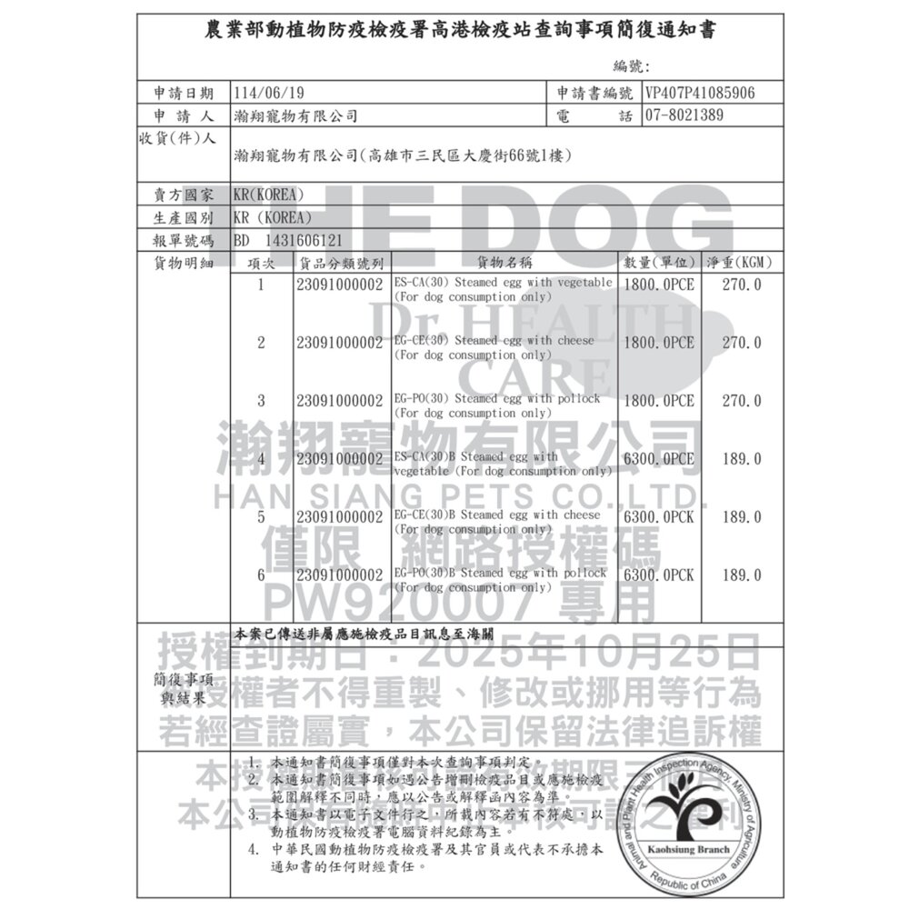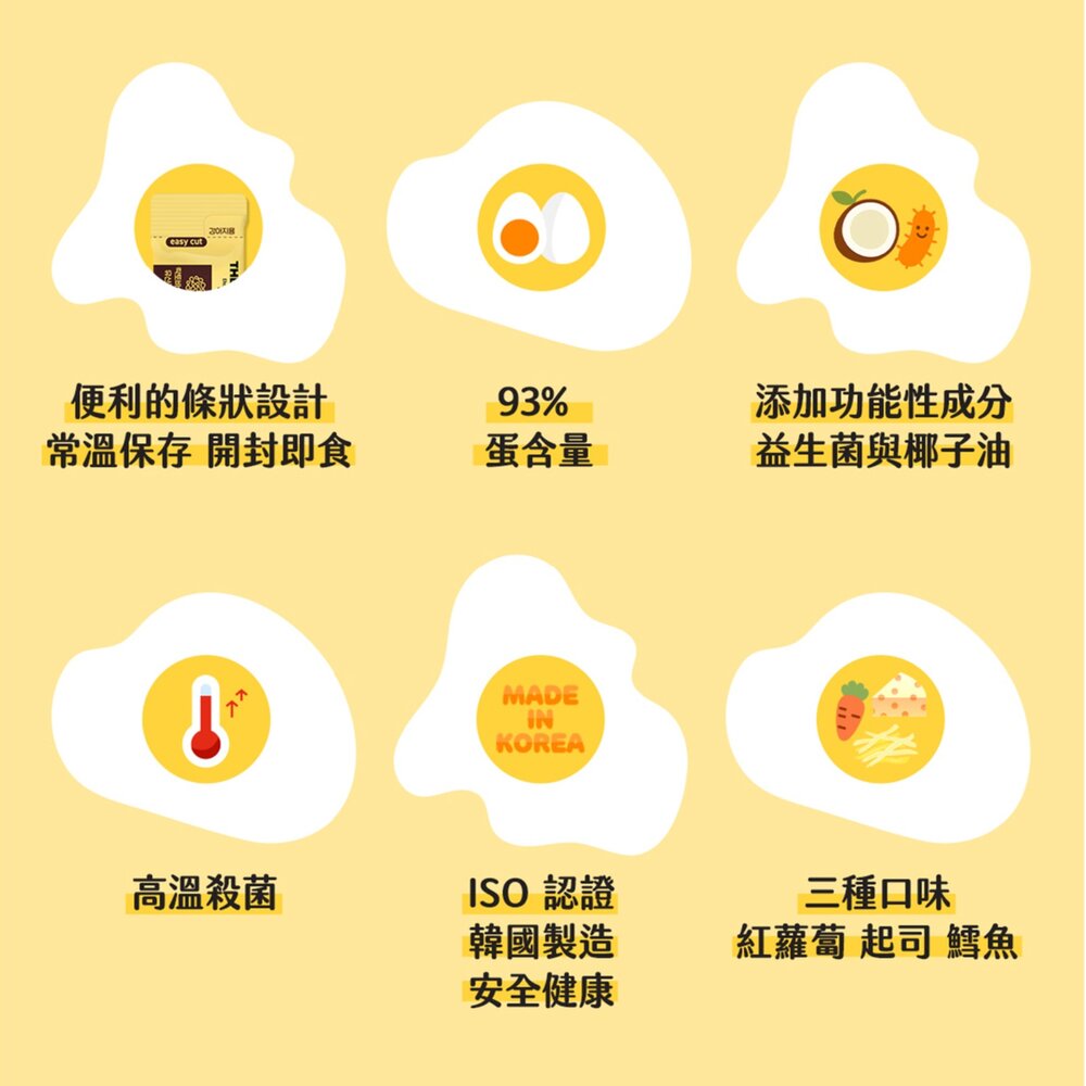 韓國第一款首見,蒸蛋變成狗狗的美味零食,裝入到即食條袋裡!