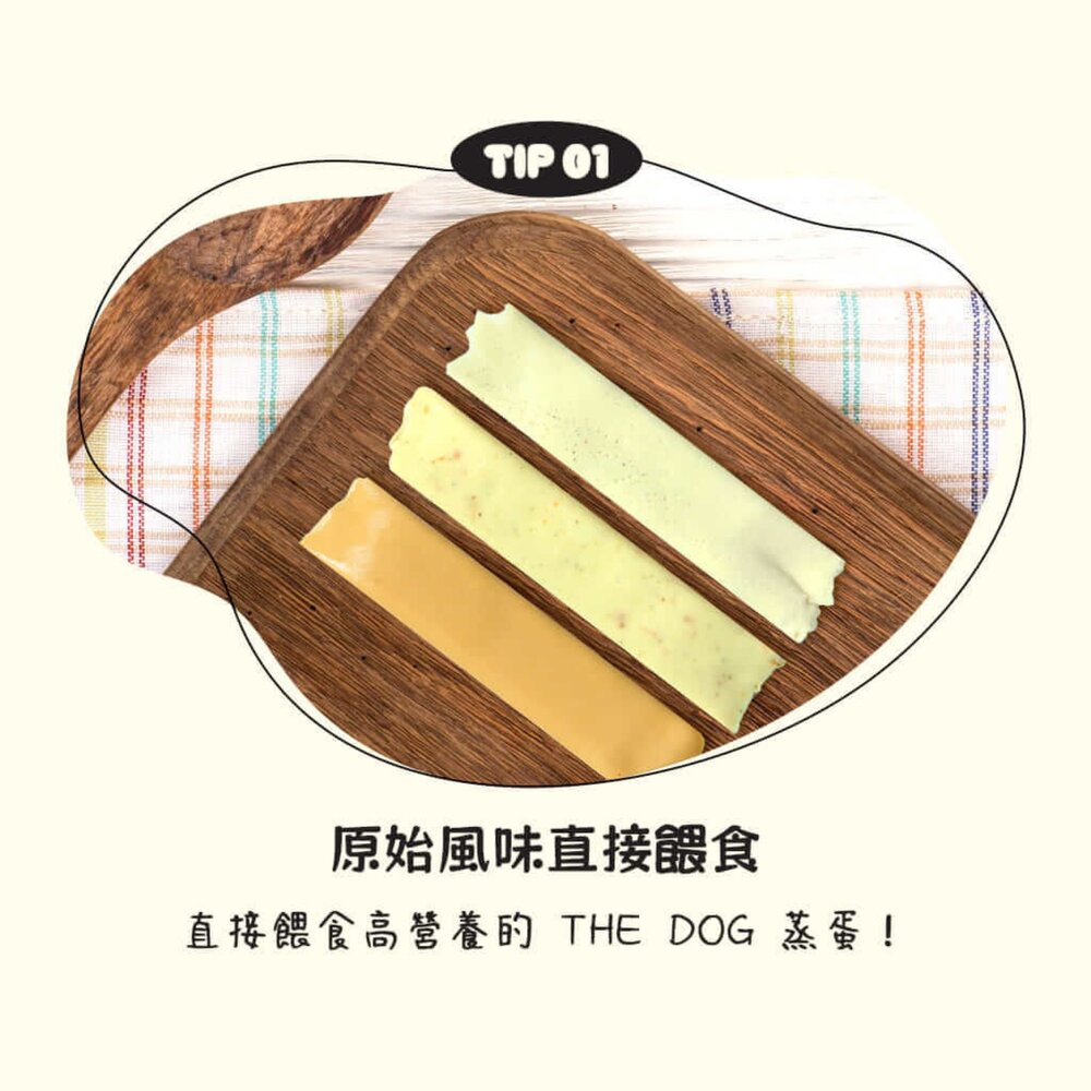 THE DOG 蒸蛋保留了豐富而細膩的蒸蛋口感,加入充滿營養的蔬菜、起司及鱈魚等成分,共有 3 種口味。
