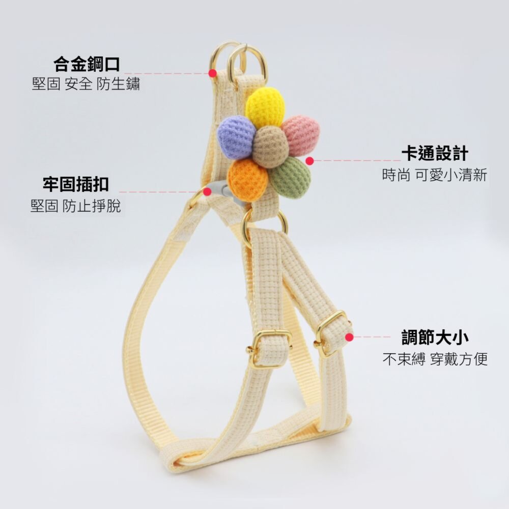 🌸🐾 LUFEI五瓣花胸背牽引繩套裝|可愛+安全,一套搞定