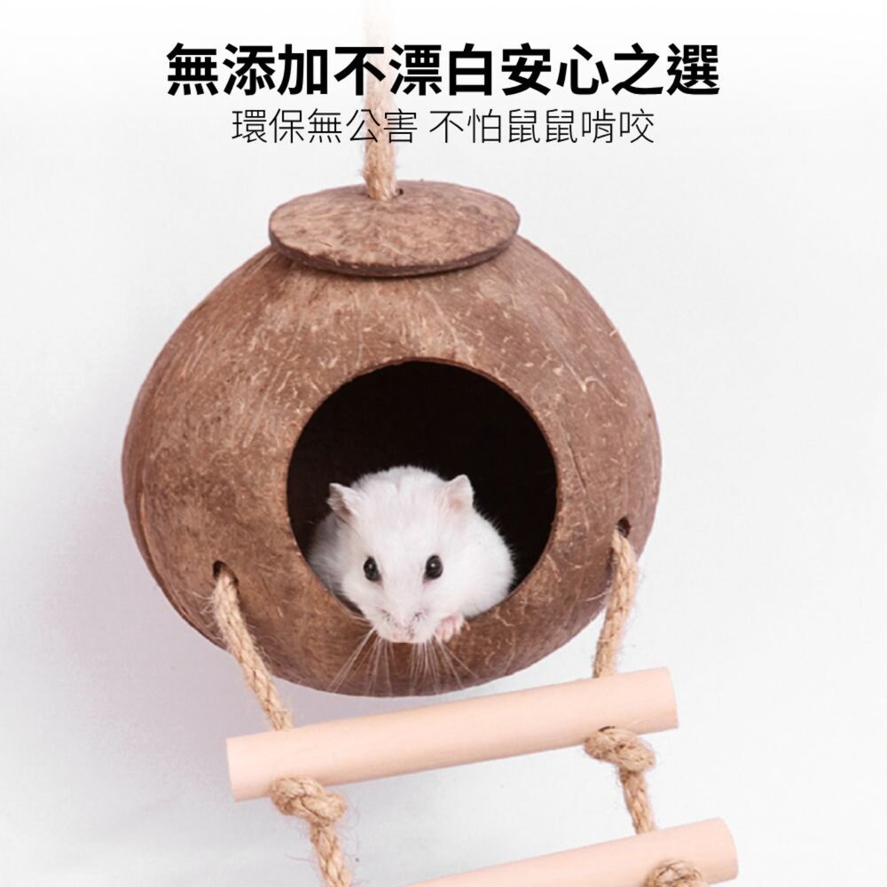 商品名稱:YEE椰殼倉鼠窩 倉鼠躲避屋 倉鼠椰子窩 天然椰子殼 倉鼠磨牙小屋 倉鼠籠內造景 倉鼠吊窩 倉鼠空中爬梯毛掌櫃寵物店