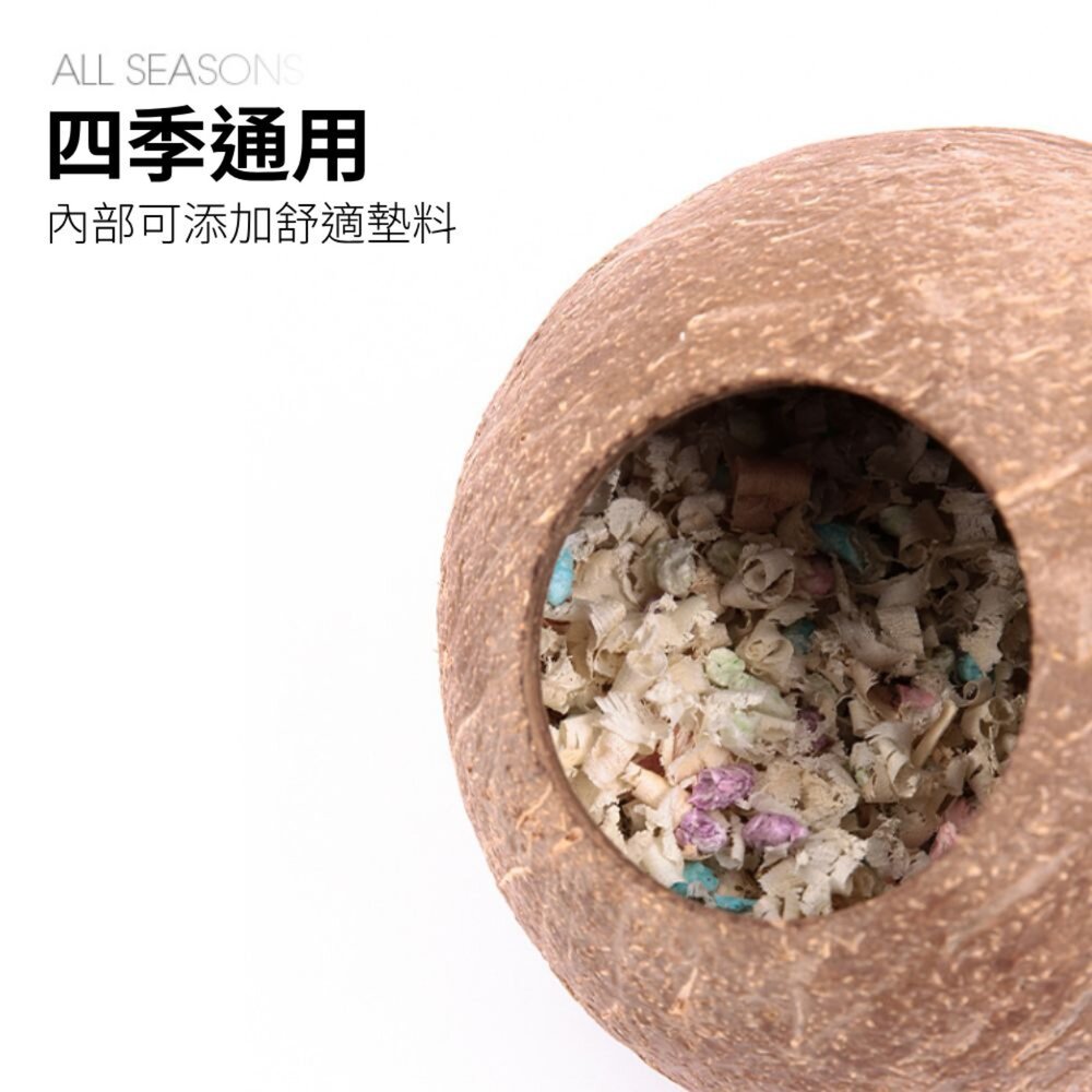 椰子殼手工打磨光滑,耐啃耐咬,安全無害,滿足躲藏與磨牙本能!