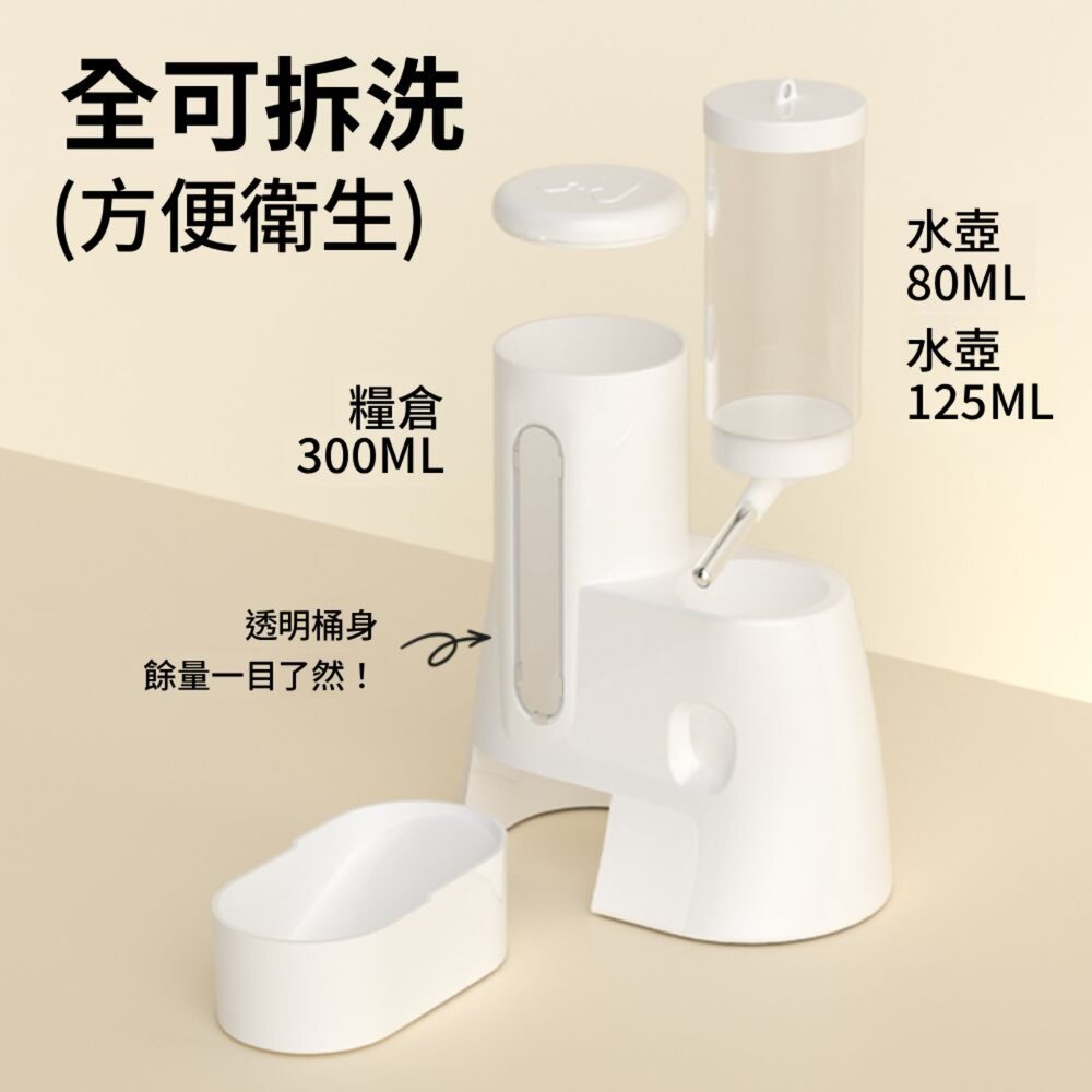 大容量設計:300ml糧倉+80/125ml水壺,7天無憂餵食