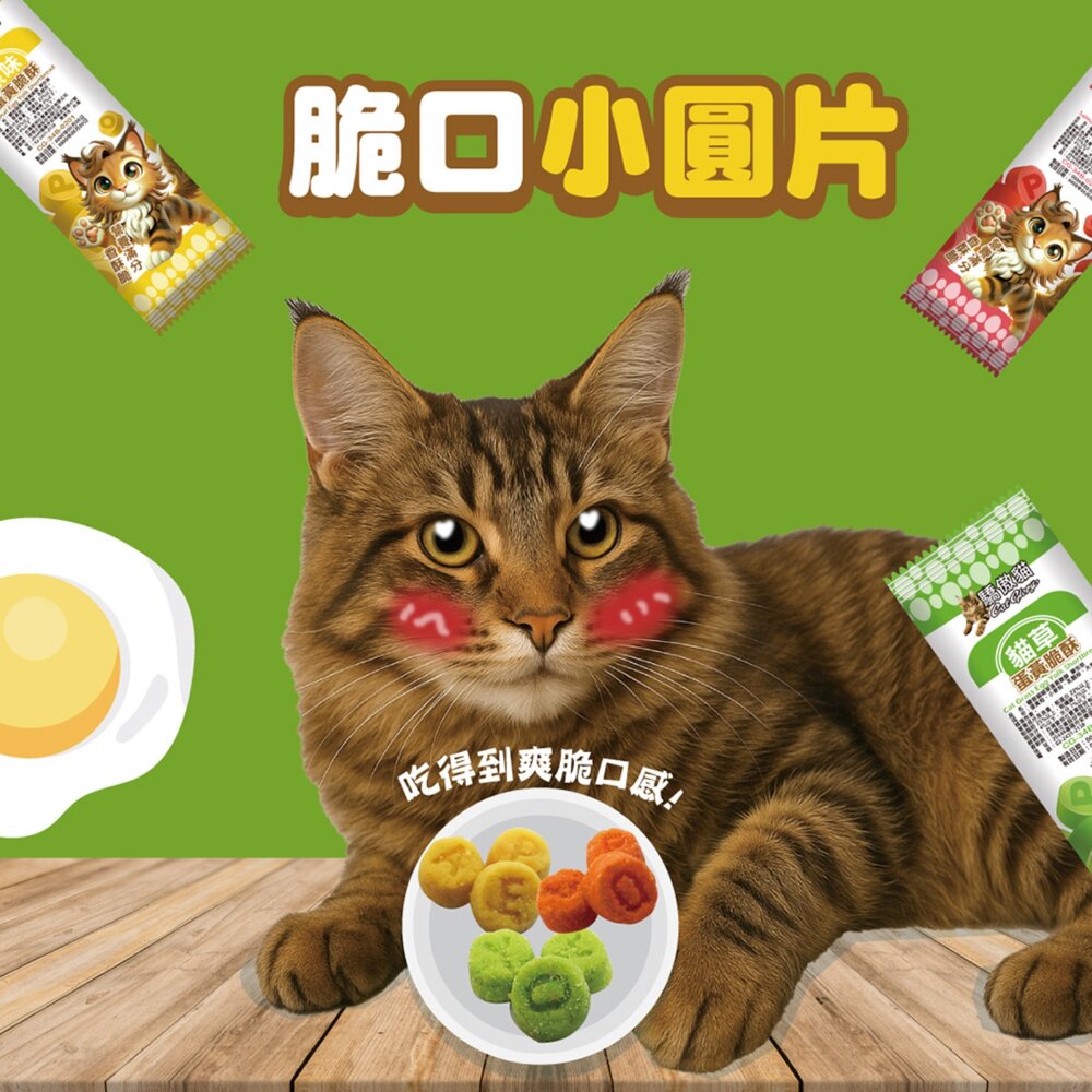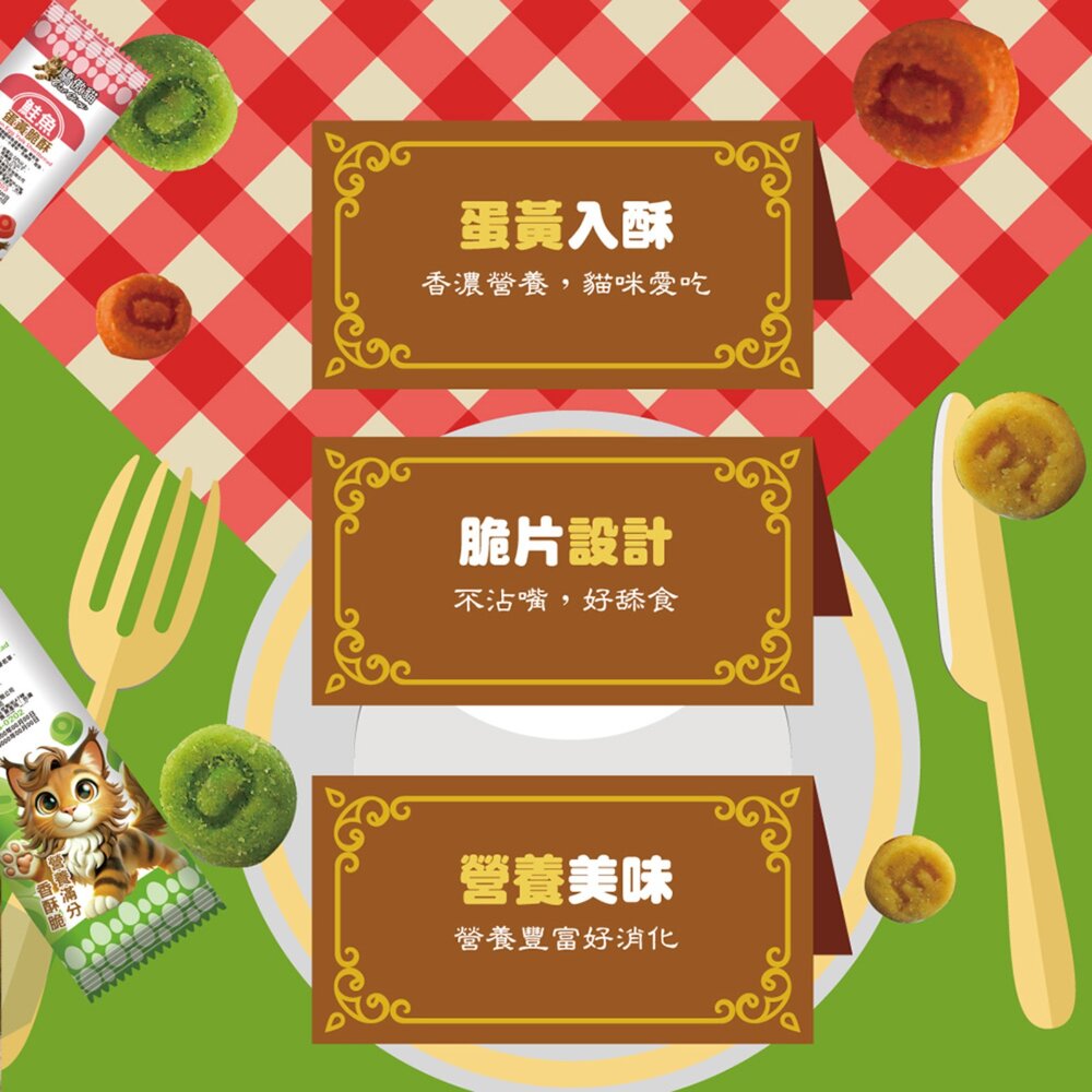 貓草蛋黃脆酥-蛋黃粉、小麥粉、乳酪粉、大麥若草、綠藻色素