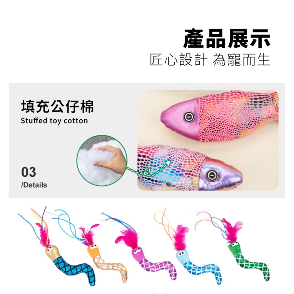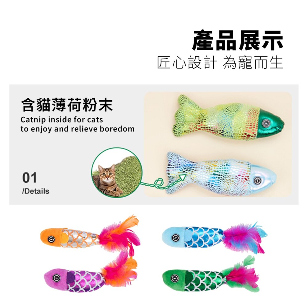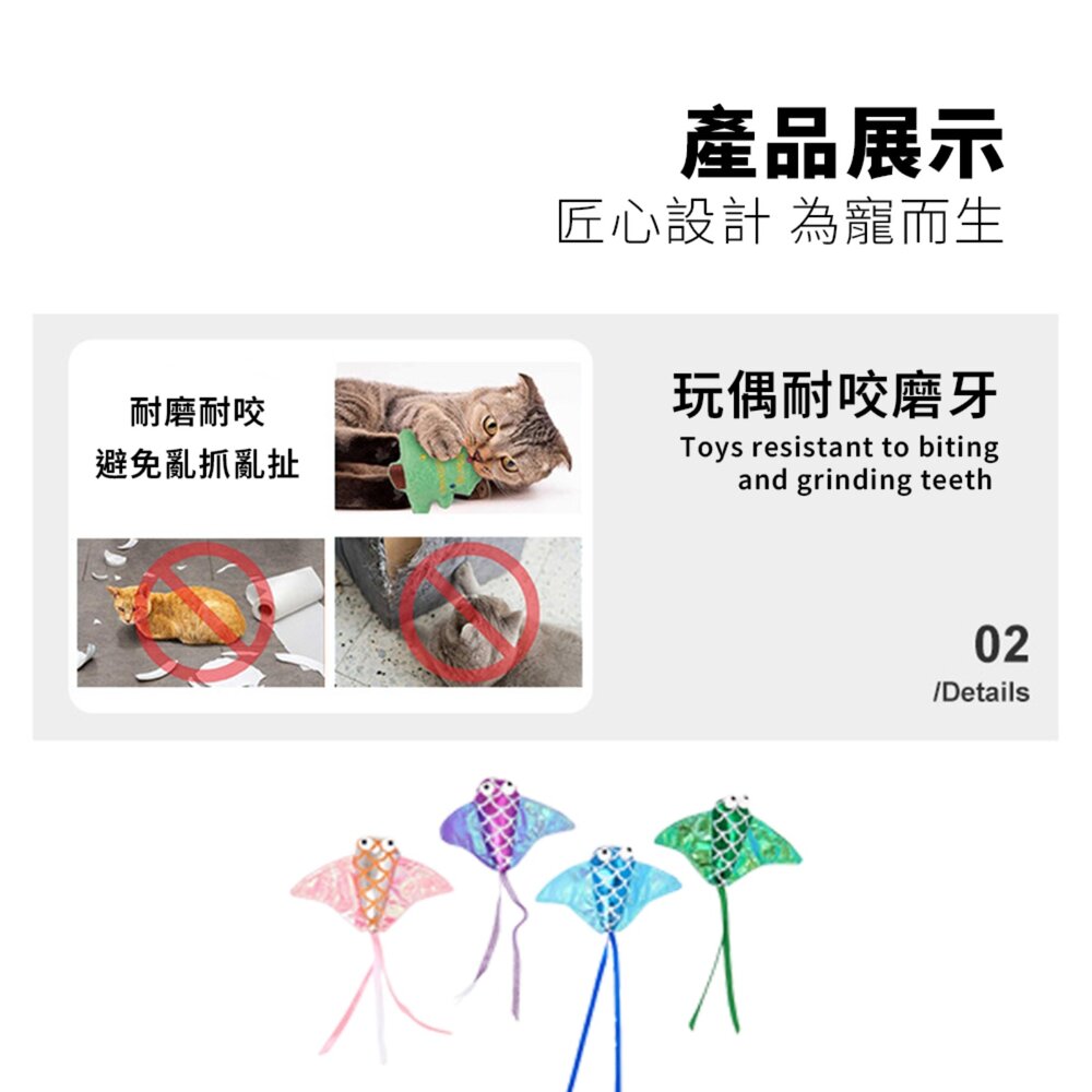匠心設計,專為毛孩打造!繽紛魚型與魟魚造型搭配羽毛尾巴與貓薄荷填充,