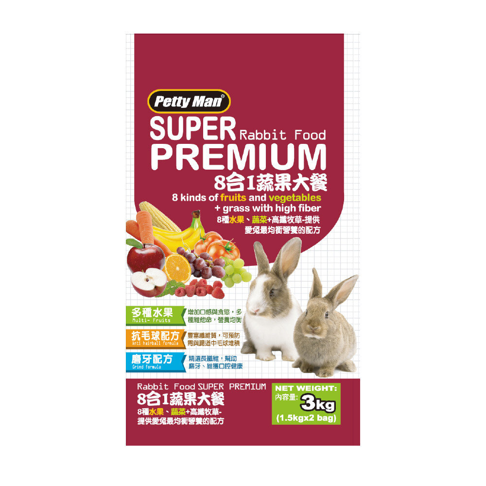 商品名稱:pettyman 兔子飼料 mrpet 兔主食 愛兔綜合營養 八合一蔬果大餐 兔子 高纖牧草 小寵毛掌櫃寵物店