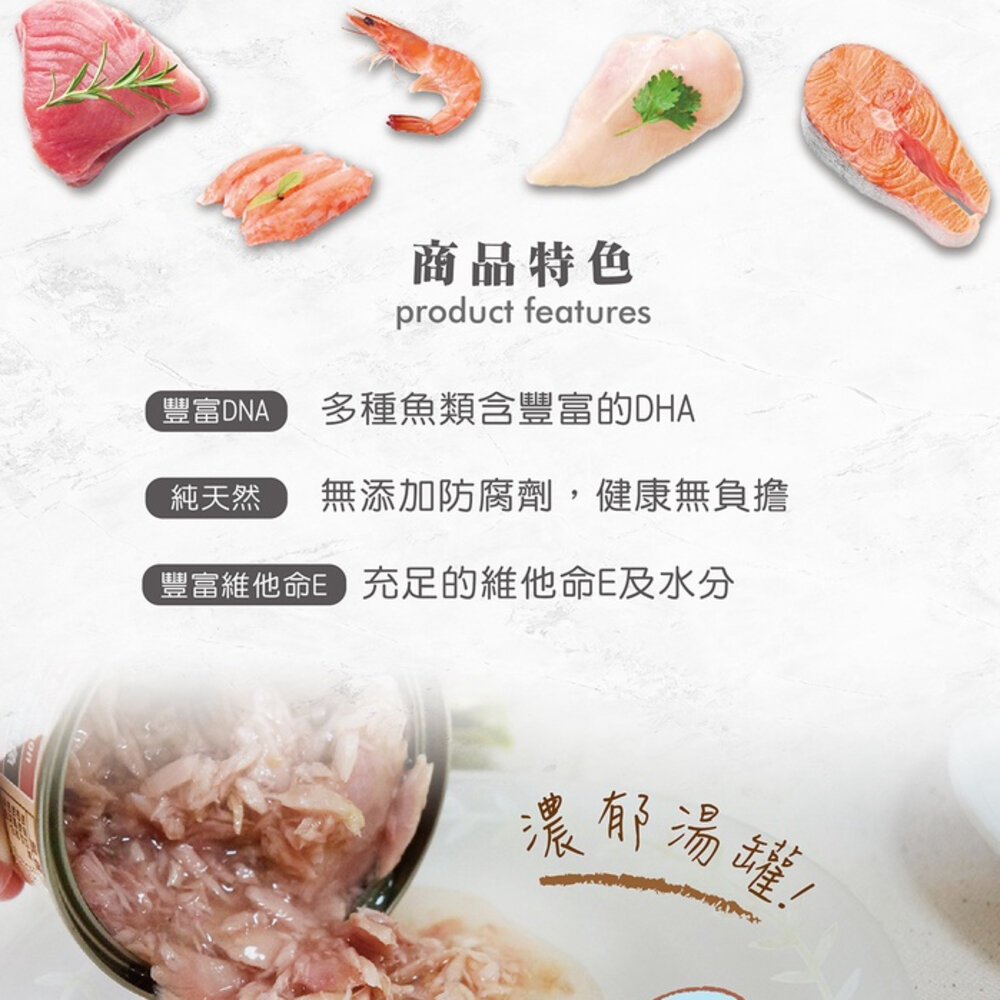 規格(超取限重5公斤):1號鮪魚+柴魚80g, 2號鮪魚+鮮蝦80g, 3號鮪魚+蟹肉80g, 4號白身鮪魚+吻仔魚80g, 5號白身鮪魚+鮭魚80g, 6號白身鮪魚+雞肉80g