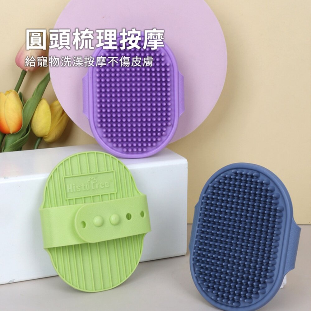 柔軟矽膠圓頭刷毛,親膚不傷皮膚,讓狗狗與貓咪在清潔同時享受按摩快感。