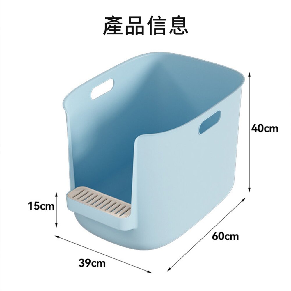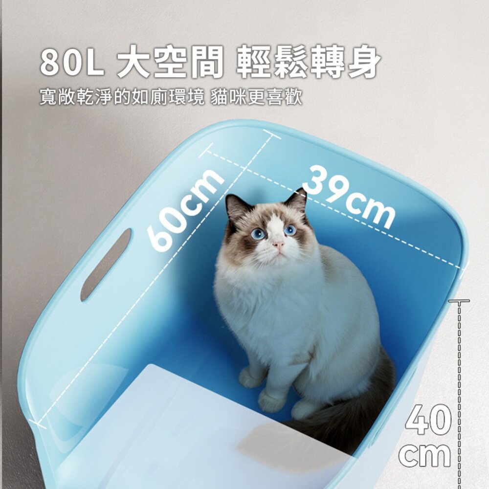 這款 特大號貓砂盆 採用一體成型設計,容量高達 80L,空間寬敞,