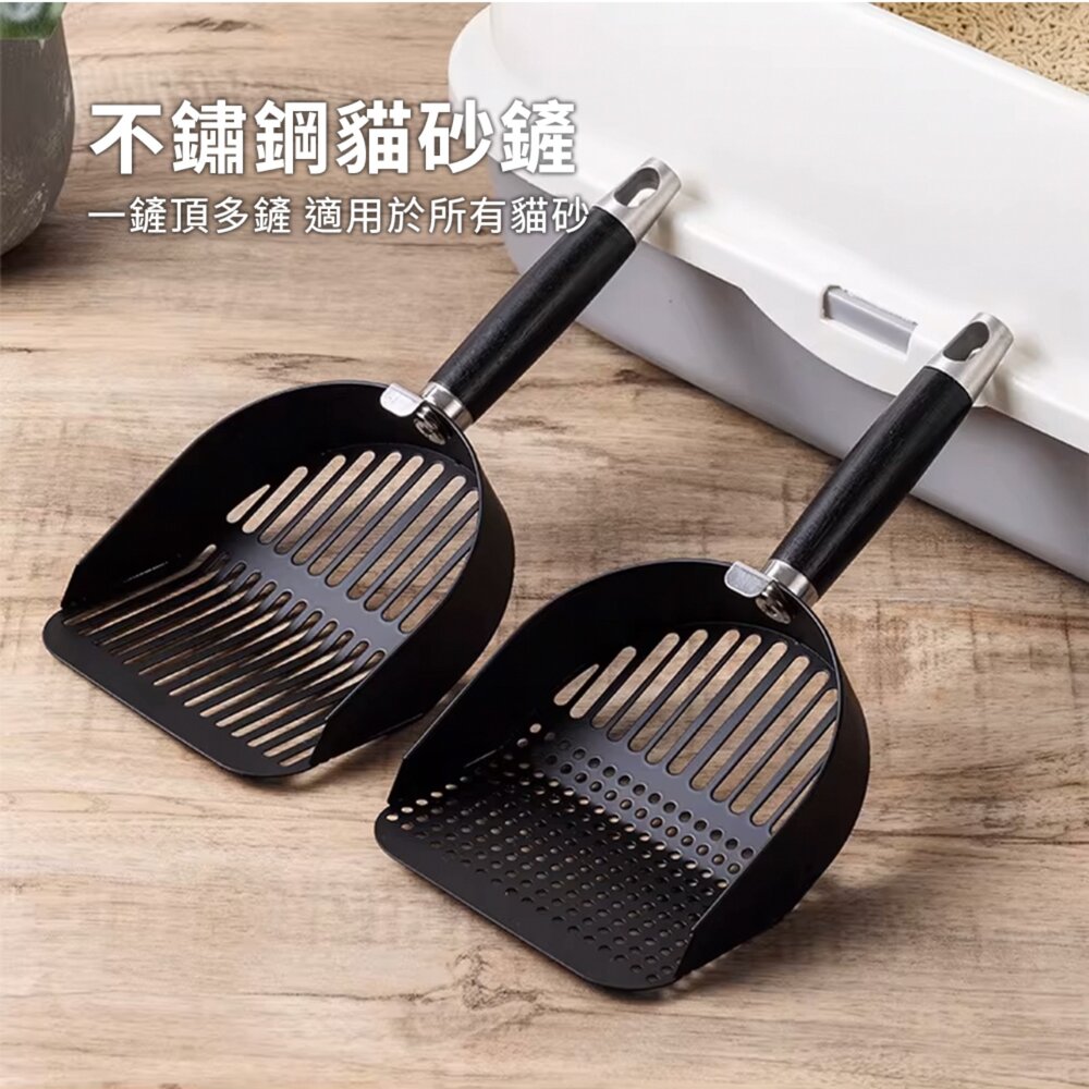 商品名稱:SCOOP 不鏽鋼貓砂鏟 全黑貓砂鏟 不鏽鋼貓屎鏟 豆腐礦砂專用鏟子 二合一大號細孔鏟屎神器毛掌櫃寵物店