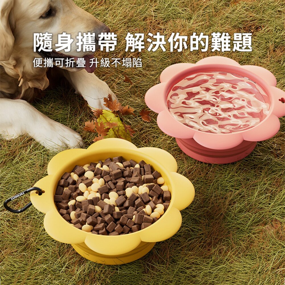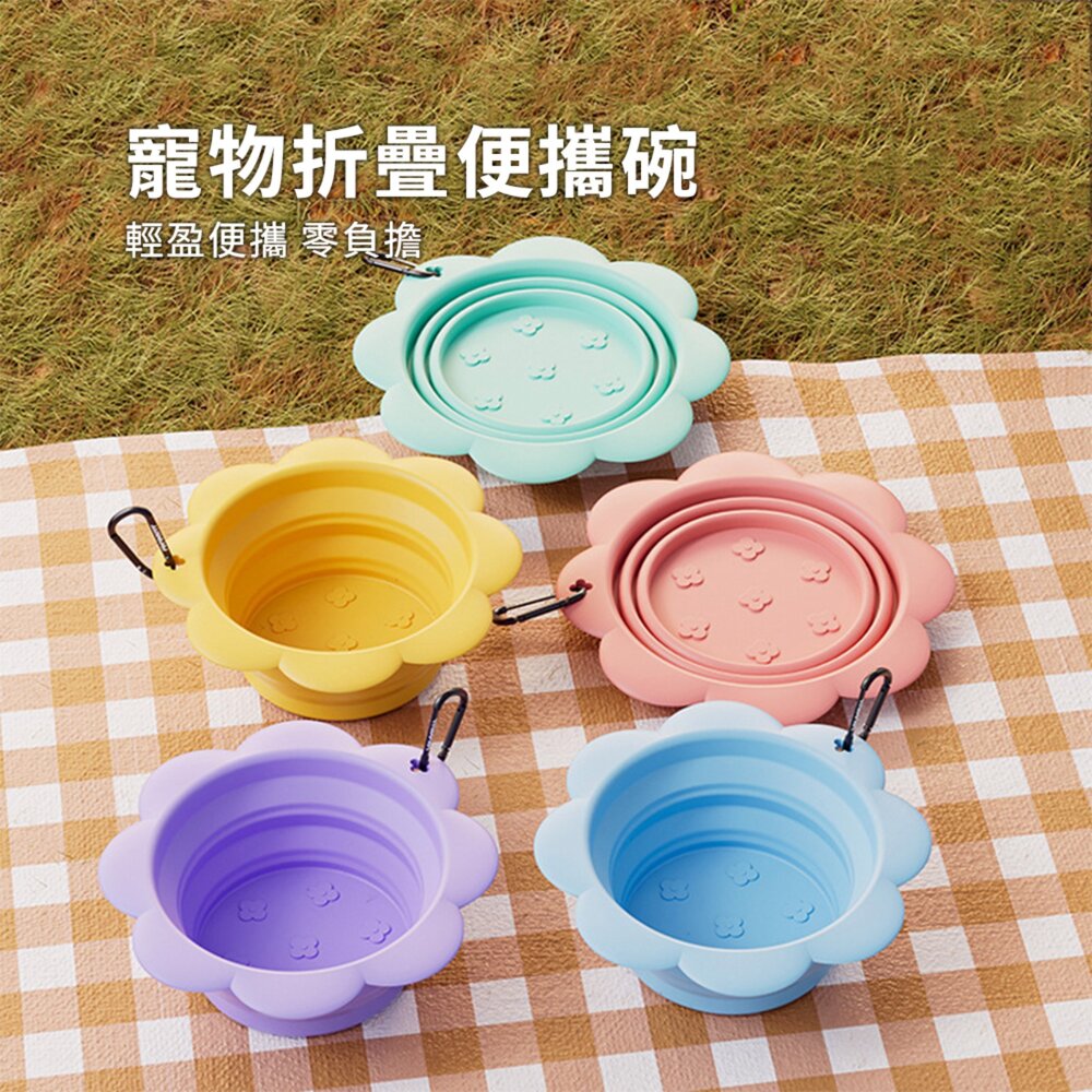 商品名稱:餵根蔬 Vegansu 花朵外出折疊碗 寵物 花朵 折疊碗 矽膠 戶外 便攜 喝水碗 狗碗 貓碗 寵物隨行杯毛掌櫃寵物店