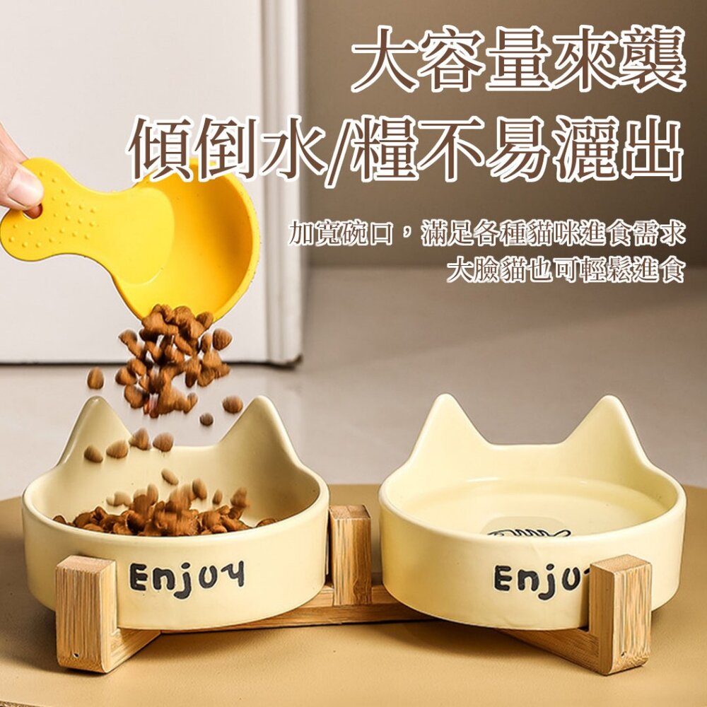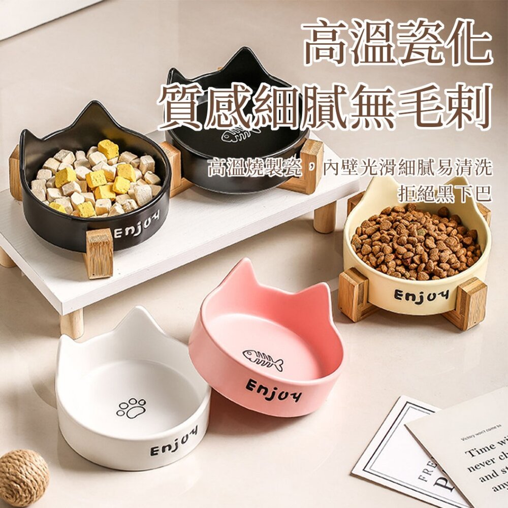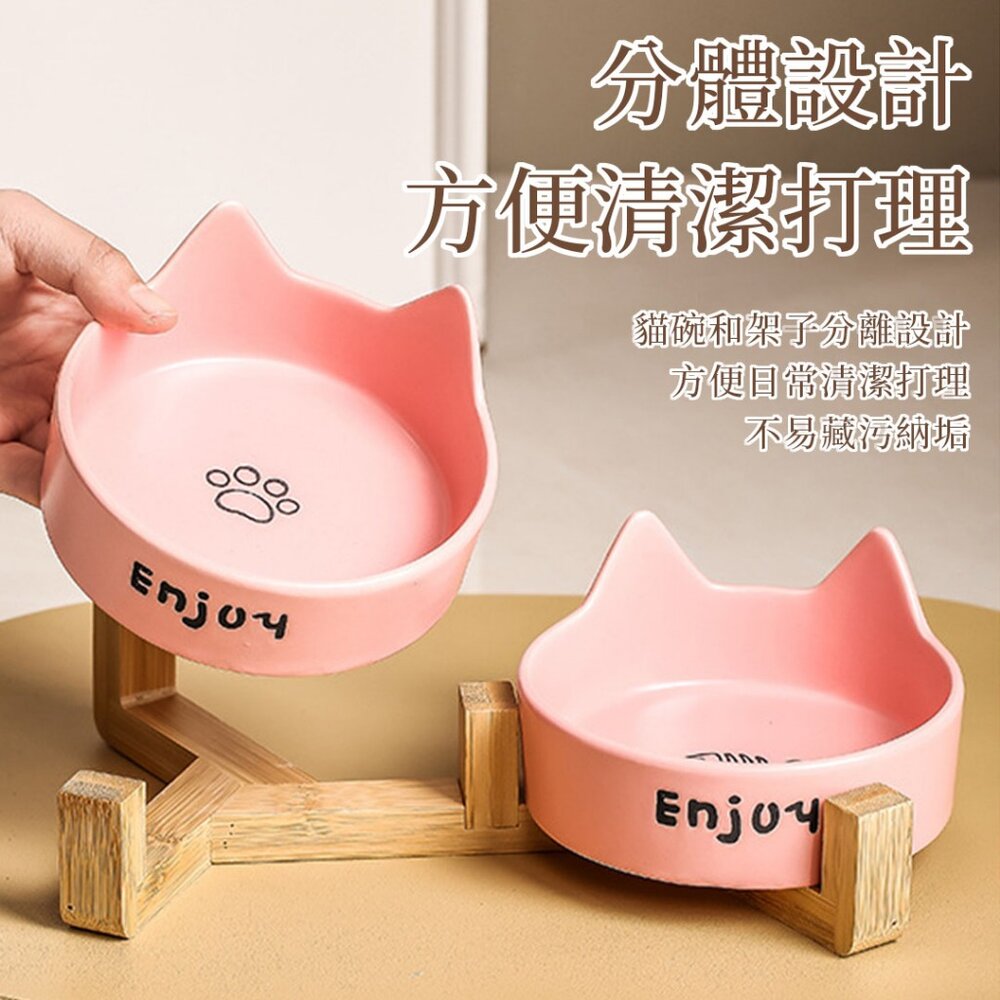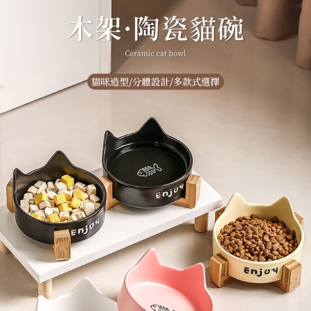 商品名稱:WMC 陶瓷貓碗 木架雙碗 寵物碗 陶瓷碗 貓碗 水碗 貓咪護頸碗 大容量 大口徑 高溫燒製 多色可選毛掌櫃寵物店