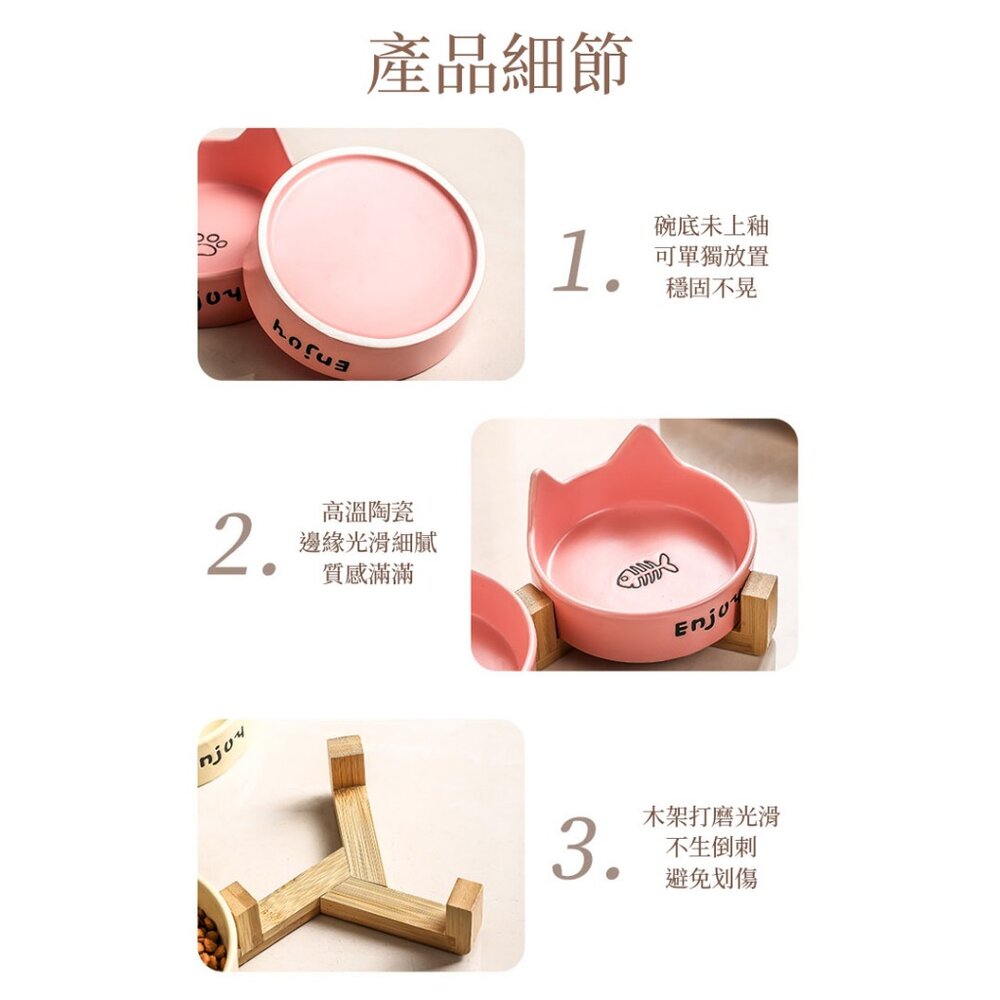名稱:木架•陶瓷貓碗