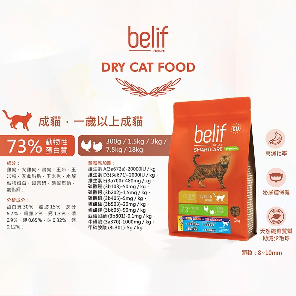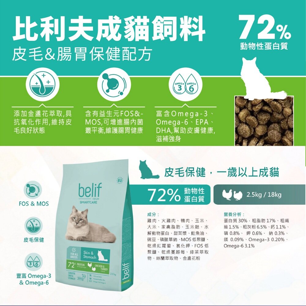 商品名稱:比利夫 優質蛋白貓飼料 Belif 雞肉&火雞肉配方 完美體態 成貓飼料 貓飼料毛掌櫃寵物店