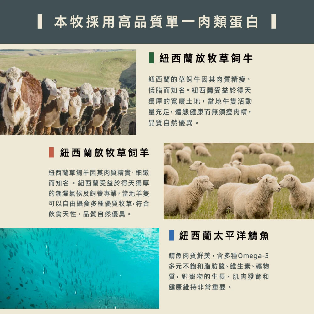 口味:自然放牧草飼牛, 永續太平洋鯖魚, 自然放牧草飼羊