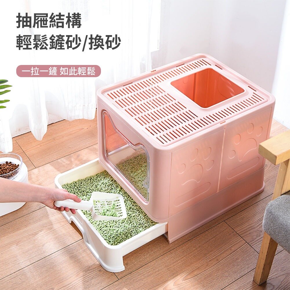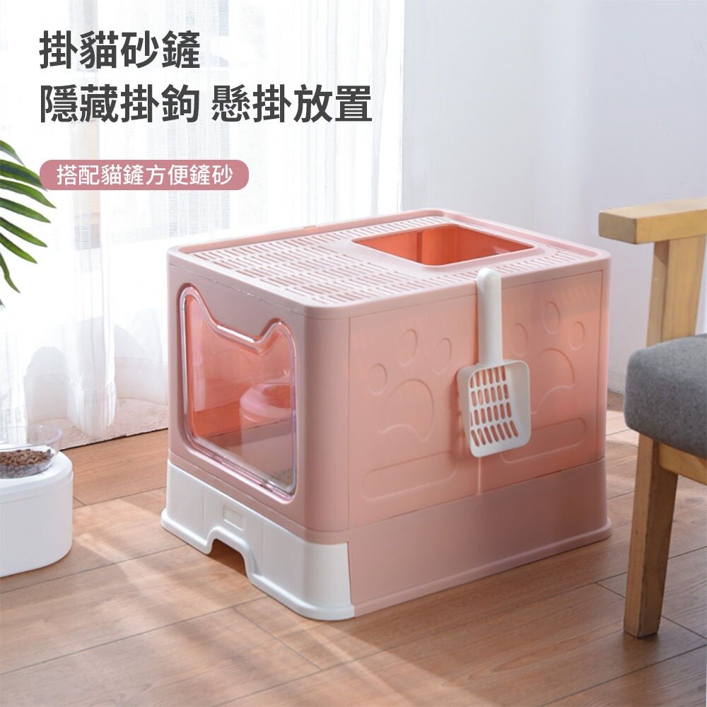商品名稱:YK 貓臉摺疊貓砂盆 全封閉式貓砂盆 封閉式貓砂盆 貓砂盆 超大貓砂盆 大尺寸大空間 貓砂 貓咪 居家用品毛掌櫃寵物店