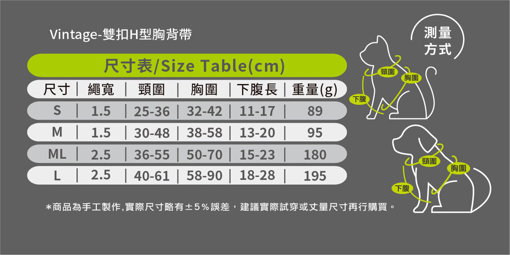 經典H型胸背帶搭配柔軟復古色系棉織帶,