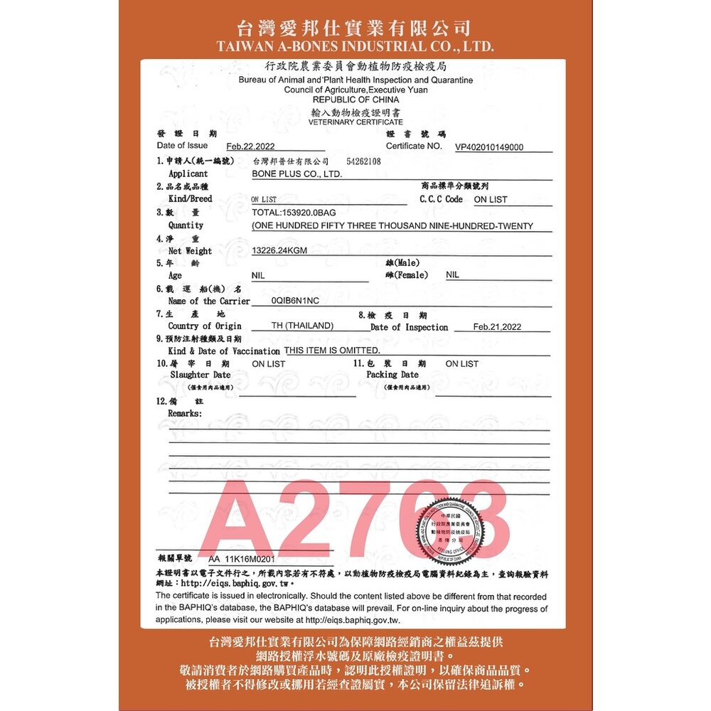 營養標示及含量: 粗蛋白 48%↑,粗脂肪 20%↑,粗纖維 5%↓,粗灰分 8%↓,水份 6%↓。