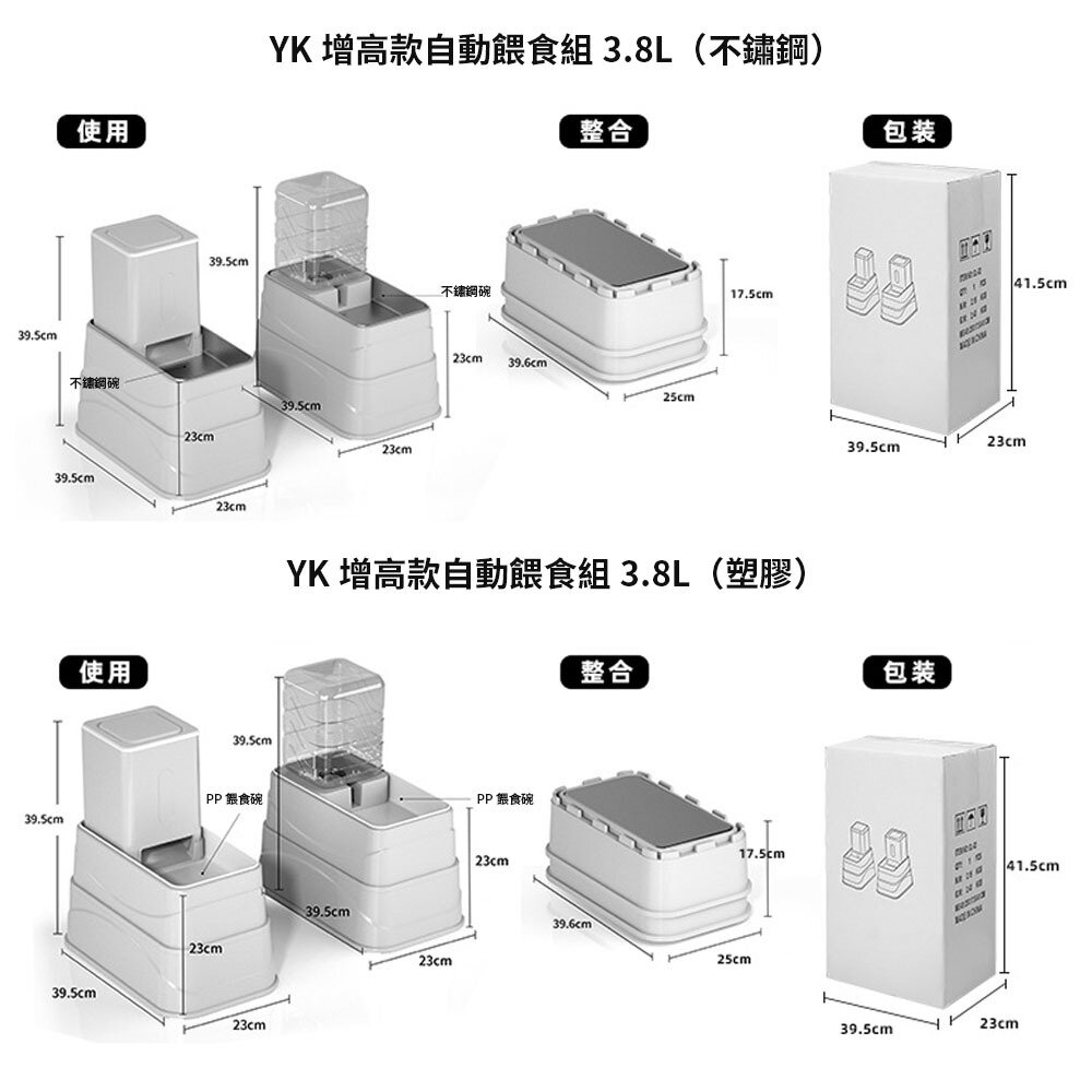 規格(超取限重5公斤):YK 不鏽鋼款 3.8L 餵食器, YK 不鏽鋼款 3.8L 飲水器, YK 塑膠款 3.8L 餵食器, YK 塑膠款 3.8L 飲水器