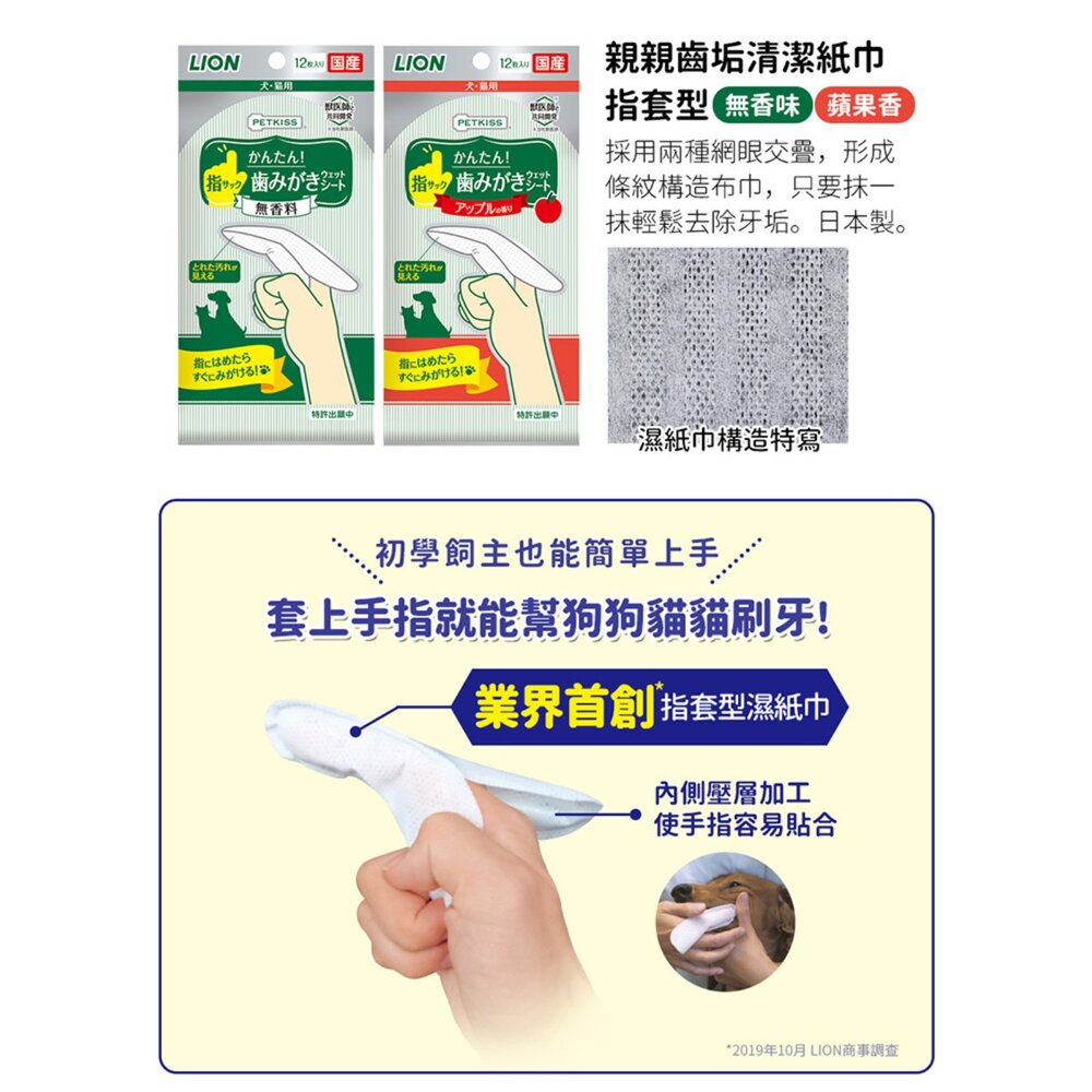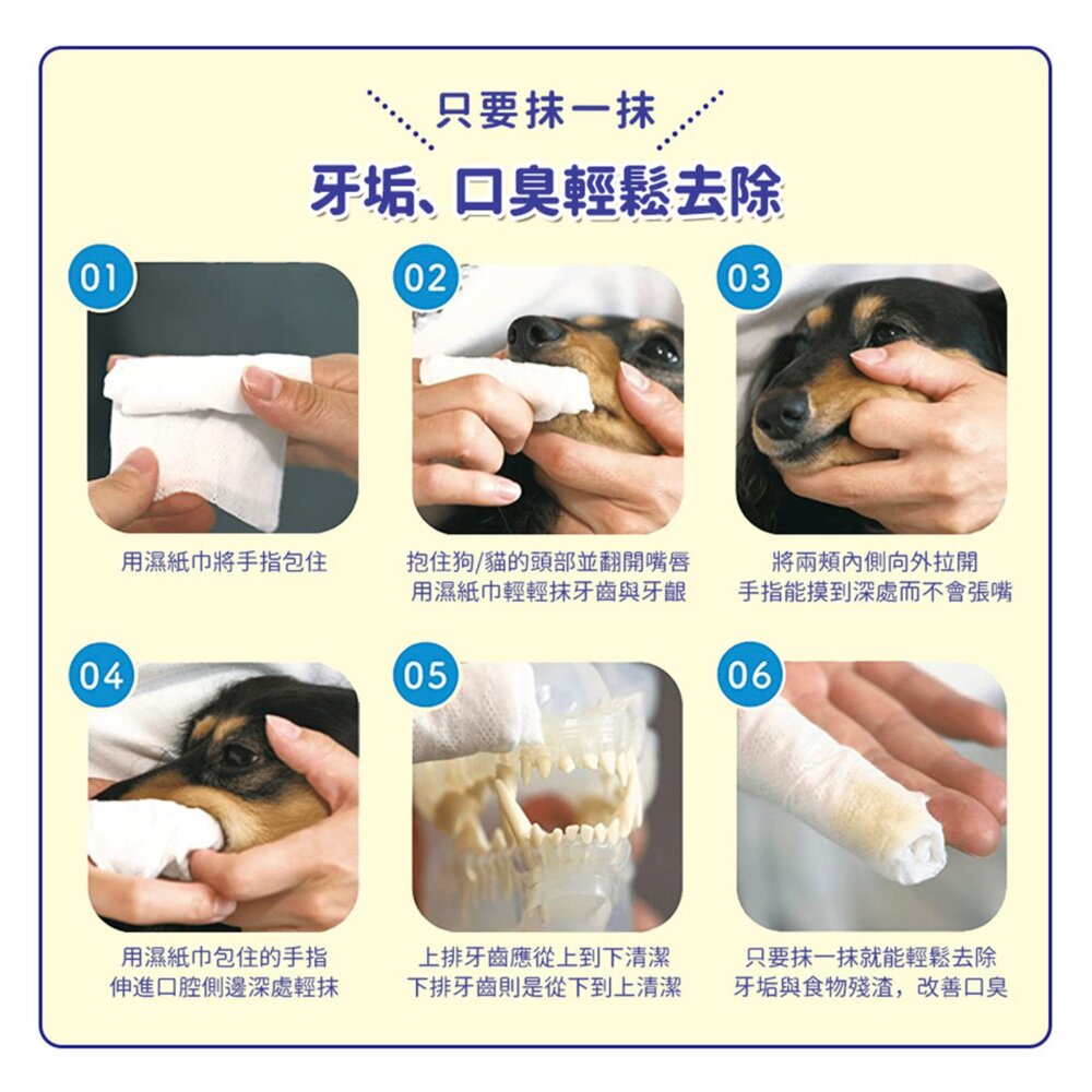 手指套上馬上就可幫狗狗貓貓洗牙!初學飼主也可簡單上手的業界首創指套型濕紙巾。