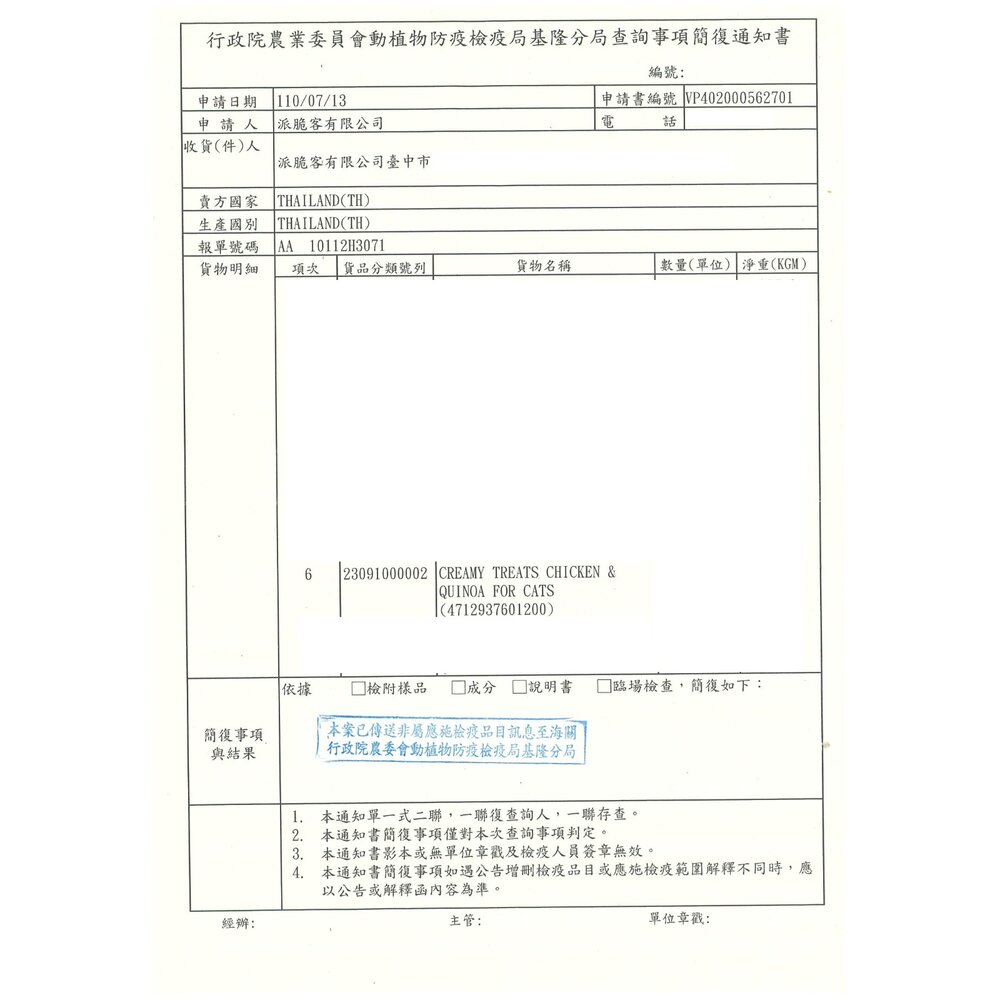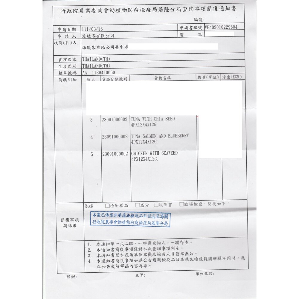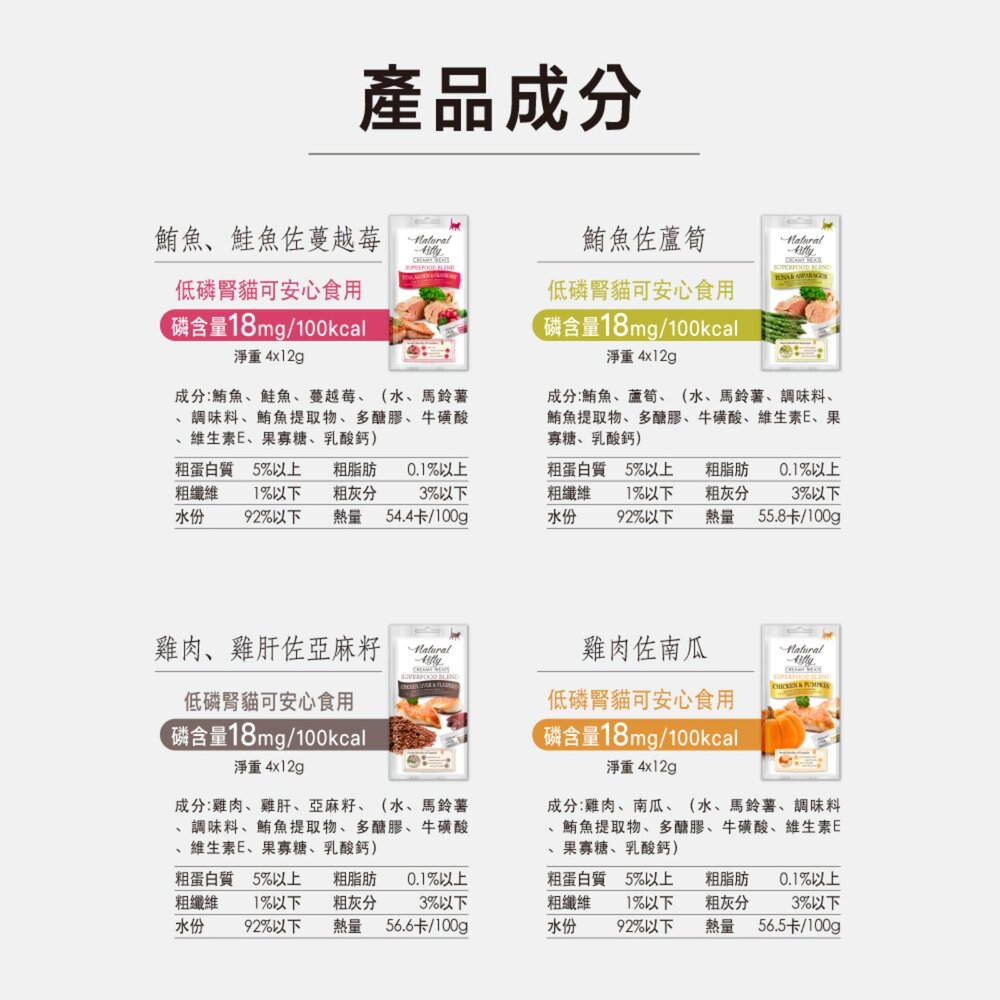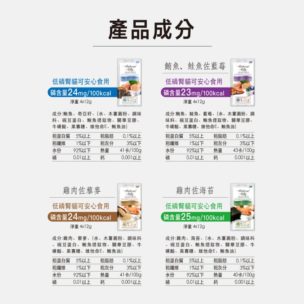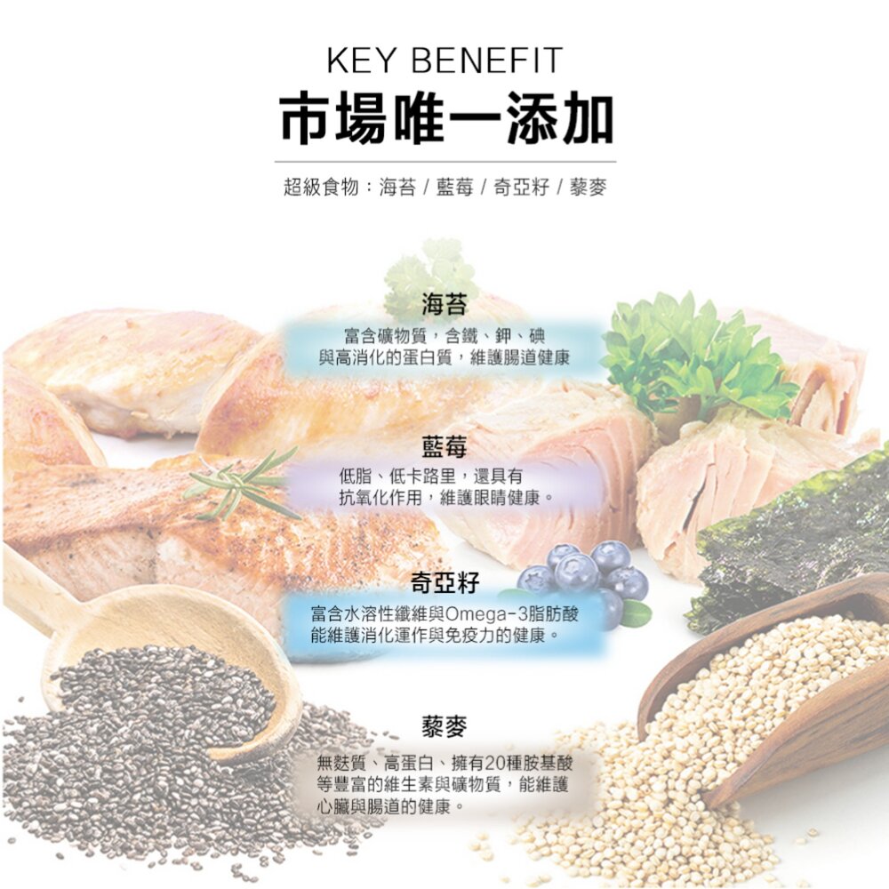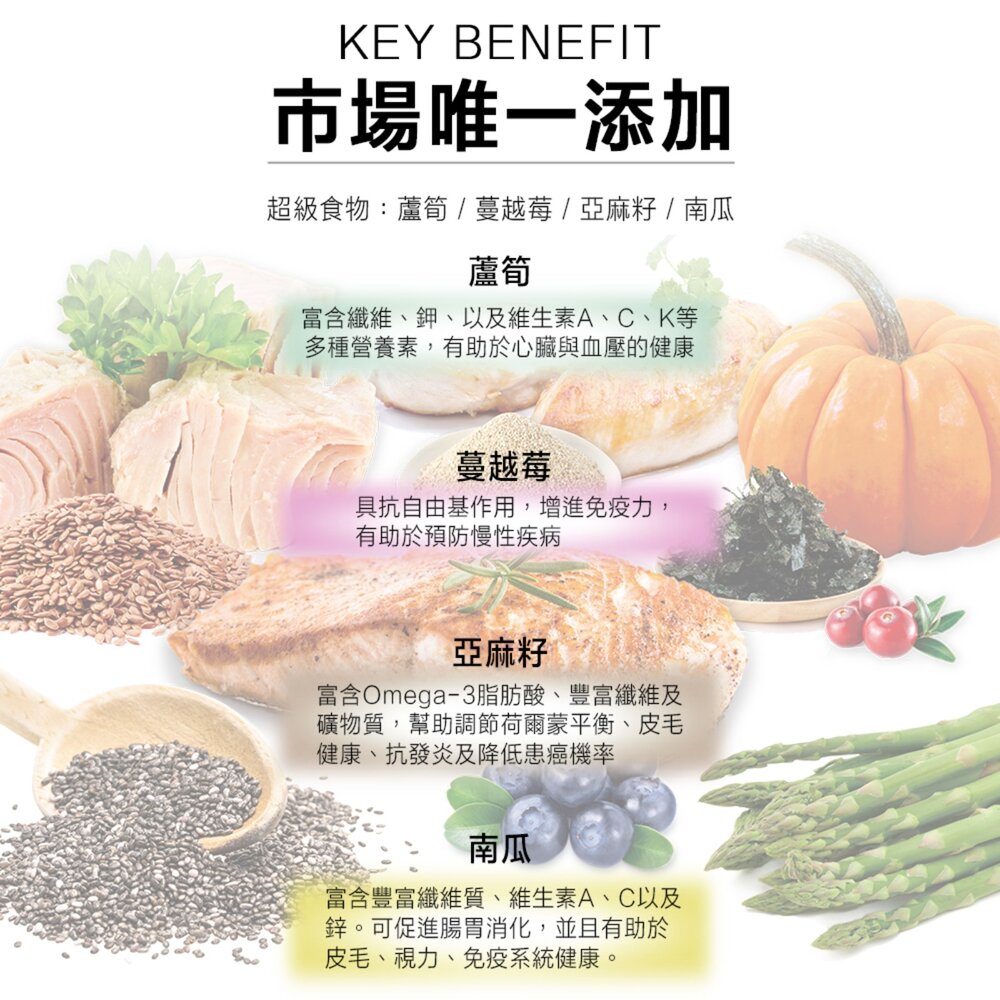 口味(超取限重5公斤):鮪魚佐奇亞籽12g*4, 鮪魚佐蘆筍12*4, 鮪魚鮭魚佐蔓越莓12*4, 鮪魚鮭魚佐藍莓12*4, 雞肉佐南瓜12*4, 雞肉佐海苔12*4, 雞肉佐藜麥12*4, 雞肉雞肝佐亞麻籽12*4