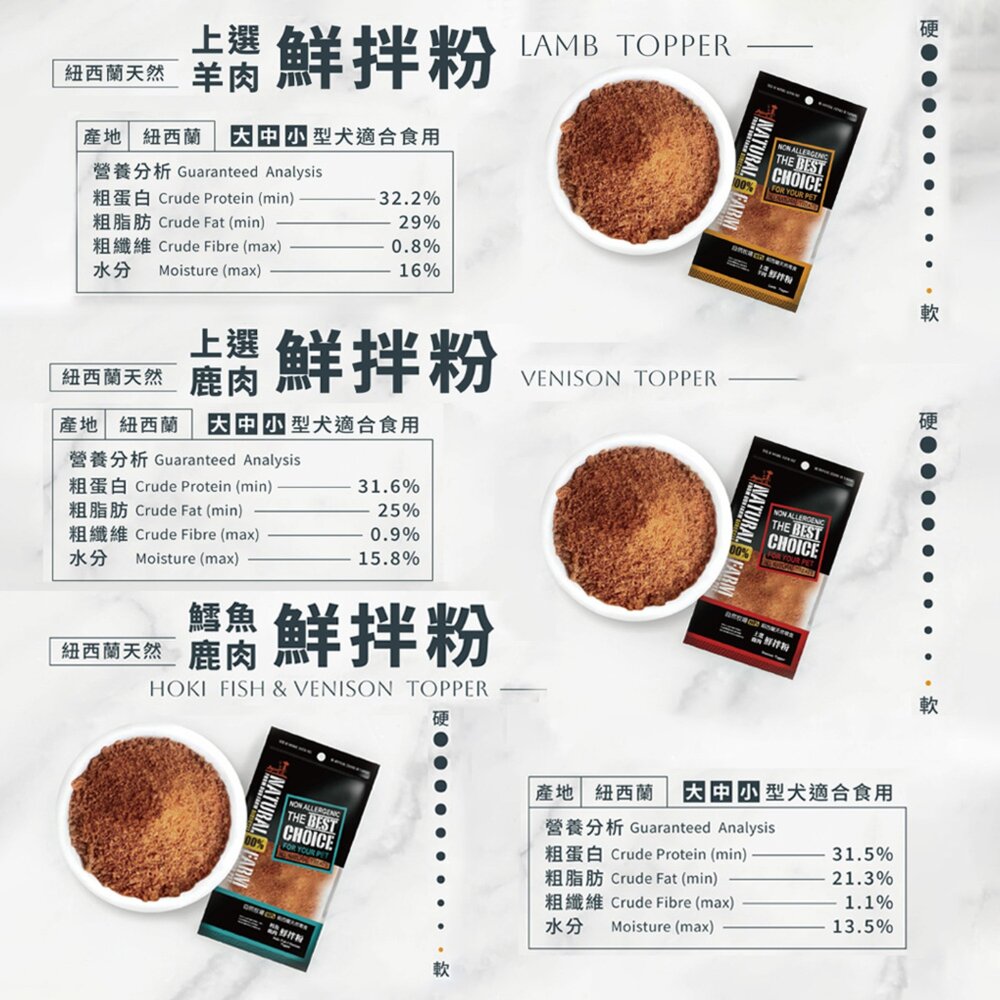 標籤:#佐餐粉, #拌食粉, #寵物肉鬆, #紐西蘭, #羊肉, #鹿肉, #牛肉, #鹿骨粉, #狗零食