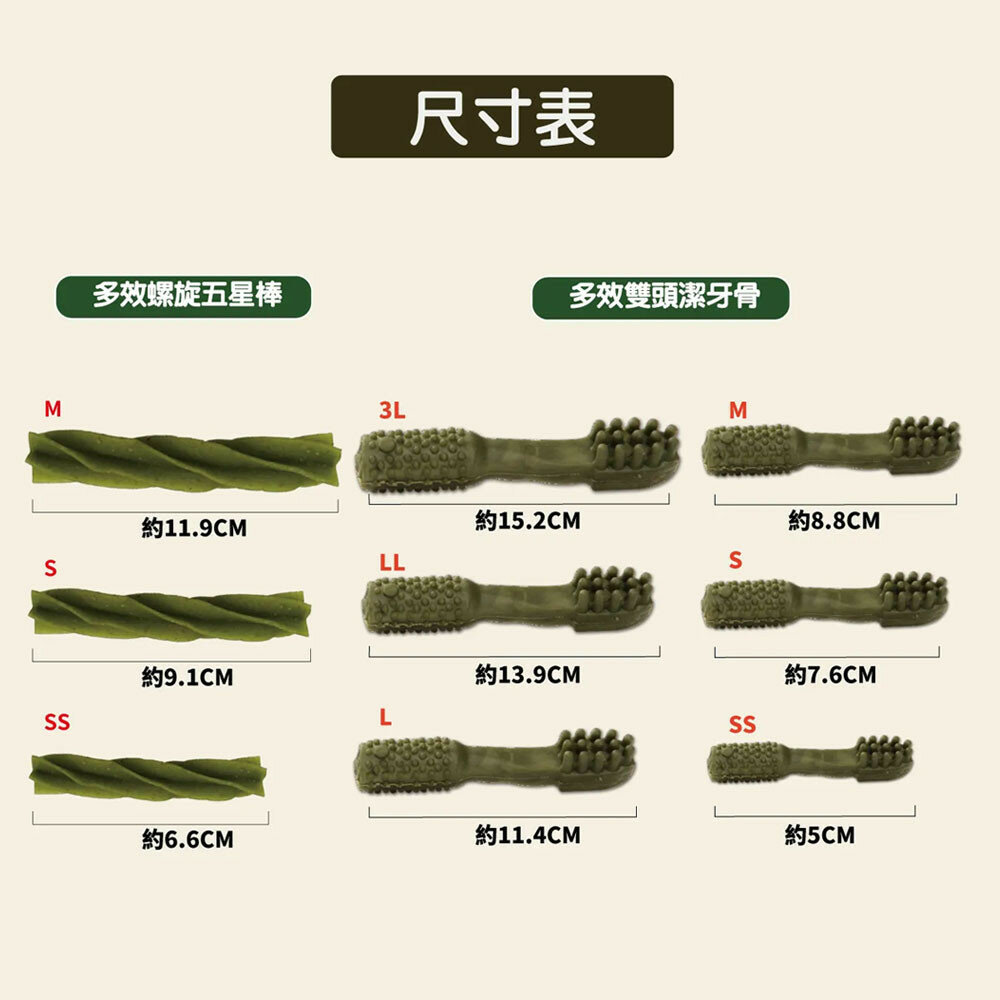 規格(超取限重5公斤):大包255g 葉綠素雙刷SS 送單支X3, 大包255g 葉綠素雙刷S 送單支X3, 大包255g 葉綠素雙刷M 送單支X3, 大包255g 葉綠素雙刷L 送單支X3, 大包255g 葉綠素五星SS 送單支X3, 大包255g 葉綠素五星S 送單支X3, 大包255g 葉綠素五星M 送單支X3, 大包255g 亮白雙刷SS 送單支X3, 大包255g 亮白雙刷S 送單支X3, 大包255g 亮白五星SS 送單支X3, 大包255g 亮白五星S 送單支X3, 大包255g 高齡犬雙刷SS 送單支X3, 大包255g 高齡犬雙刷S 送單支X3, 大包255g 高齡犬五星SS 送單支X3, 大包255g 高齡犬五星S 送單支X3, 大包255g 健胃整腸SS 送單支X3, 大包255g 健胃整腸S 送單支X3, 大包255g 保健骨骼SS 送單支X3, 大包255g 保健骨骼S 送單支X3